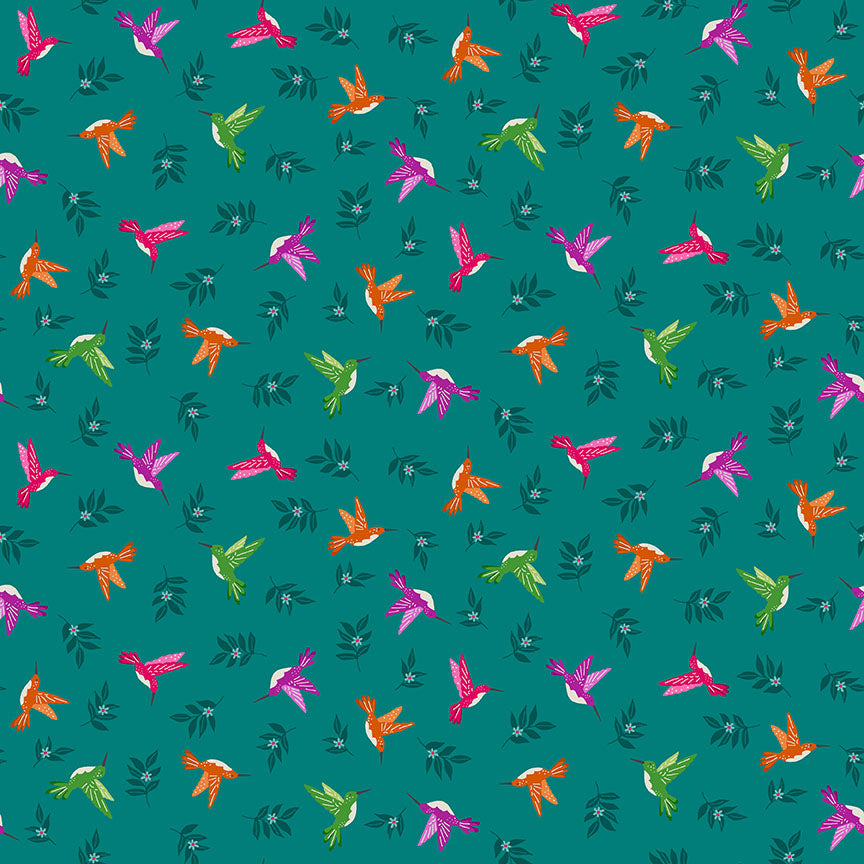 Makower Jewel Tones - Hummingbird Turquoise - 100% Cotton Fabric