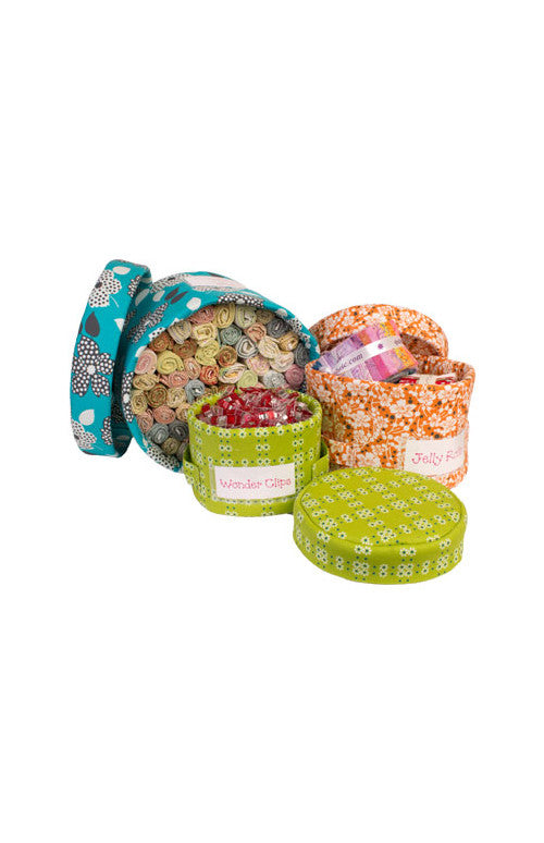 Fun and easy to make, they can be made  in three sizes to hold a multitude of treasures. When empty, they stack inside each other for neat and compact storage. Each container has a sturdy lid so the baskets may be stacked for attractive display.