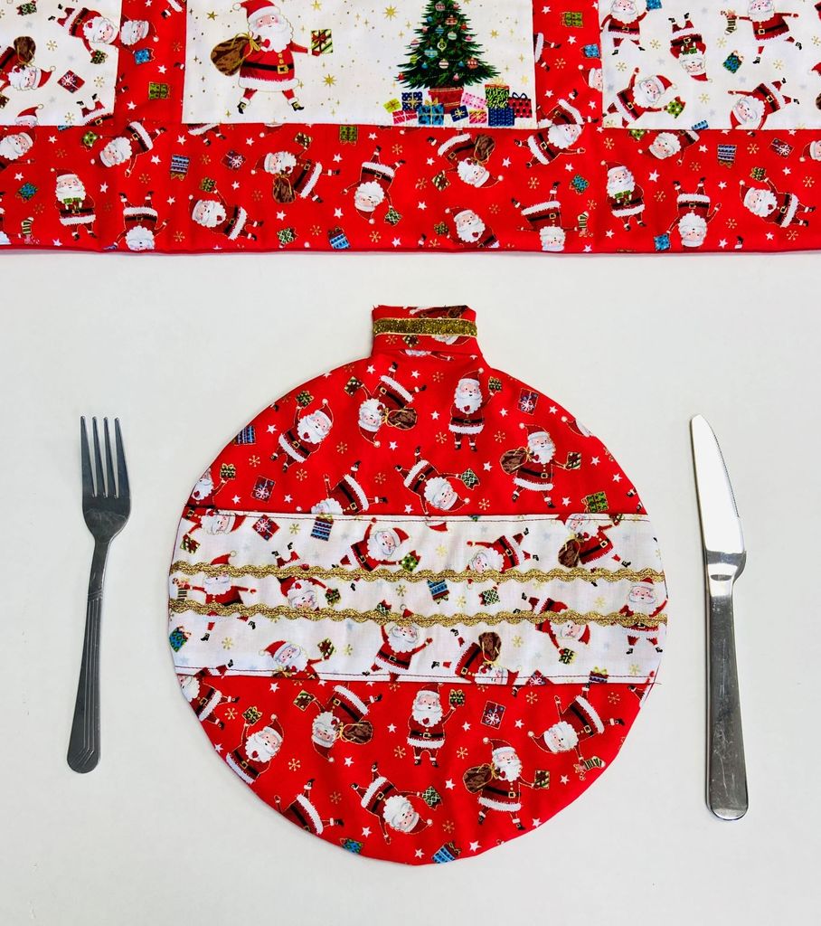 Use simple sewing techniques to create these fun bauble-shaped placemats for your Christmas table, set with sparkling gold trim for that special festive touch. They're surprisingly quick to make, and the pattern lets you whip up a set of six placemats in total.
