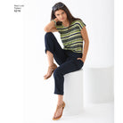 Misses' easy knit top with scoop neck and short all-in-one sleeves or higher neckline with 3/4 dolman sleeves and pull-on pants with drawstring waist. Great for casual / weekend.
