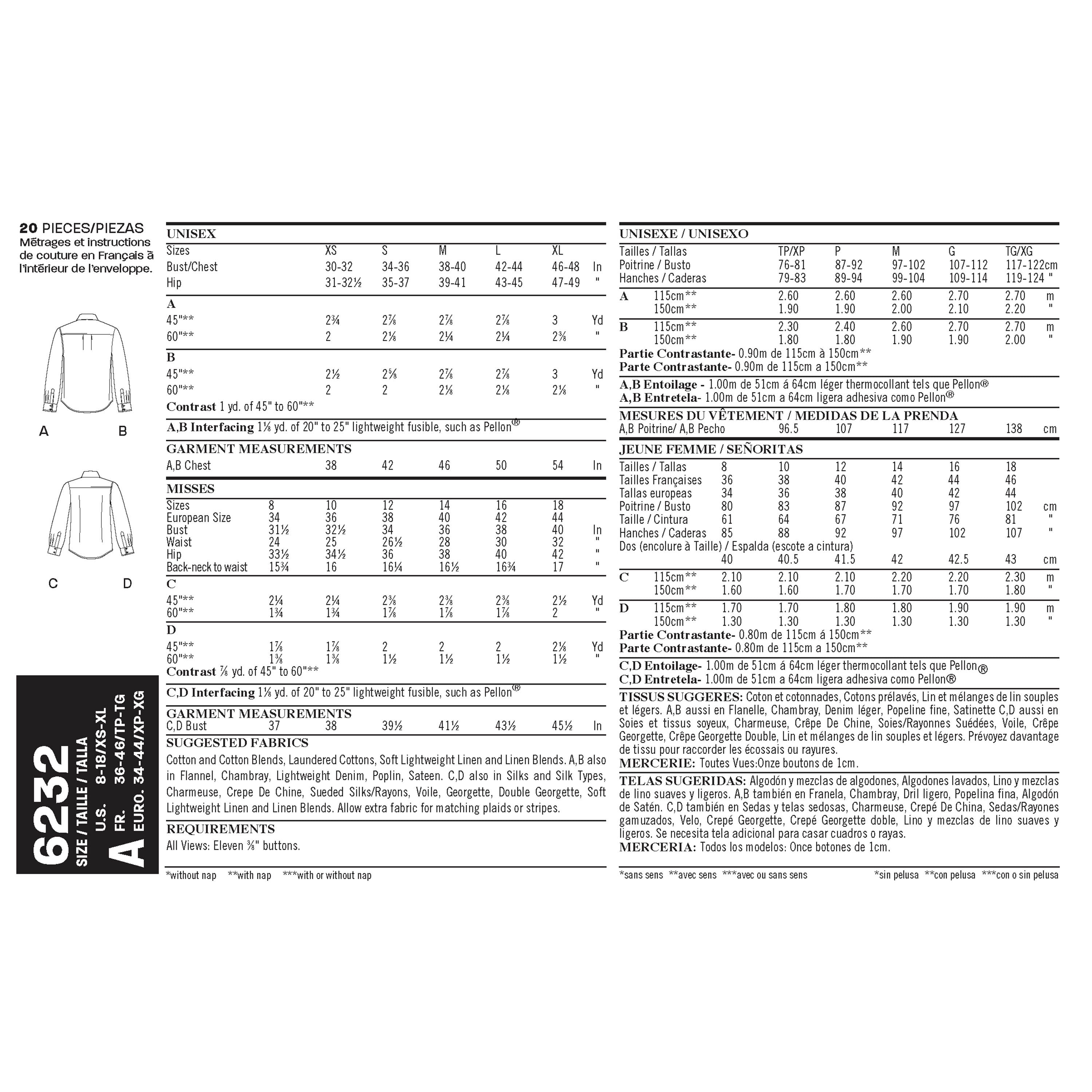 New Look Sewing Pattern 6232 - Misses' and Men's Button Down Shirt