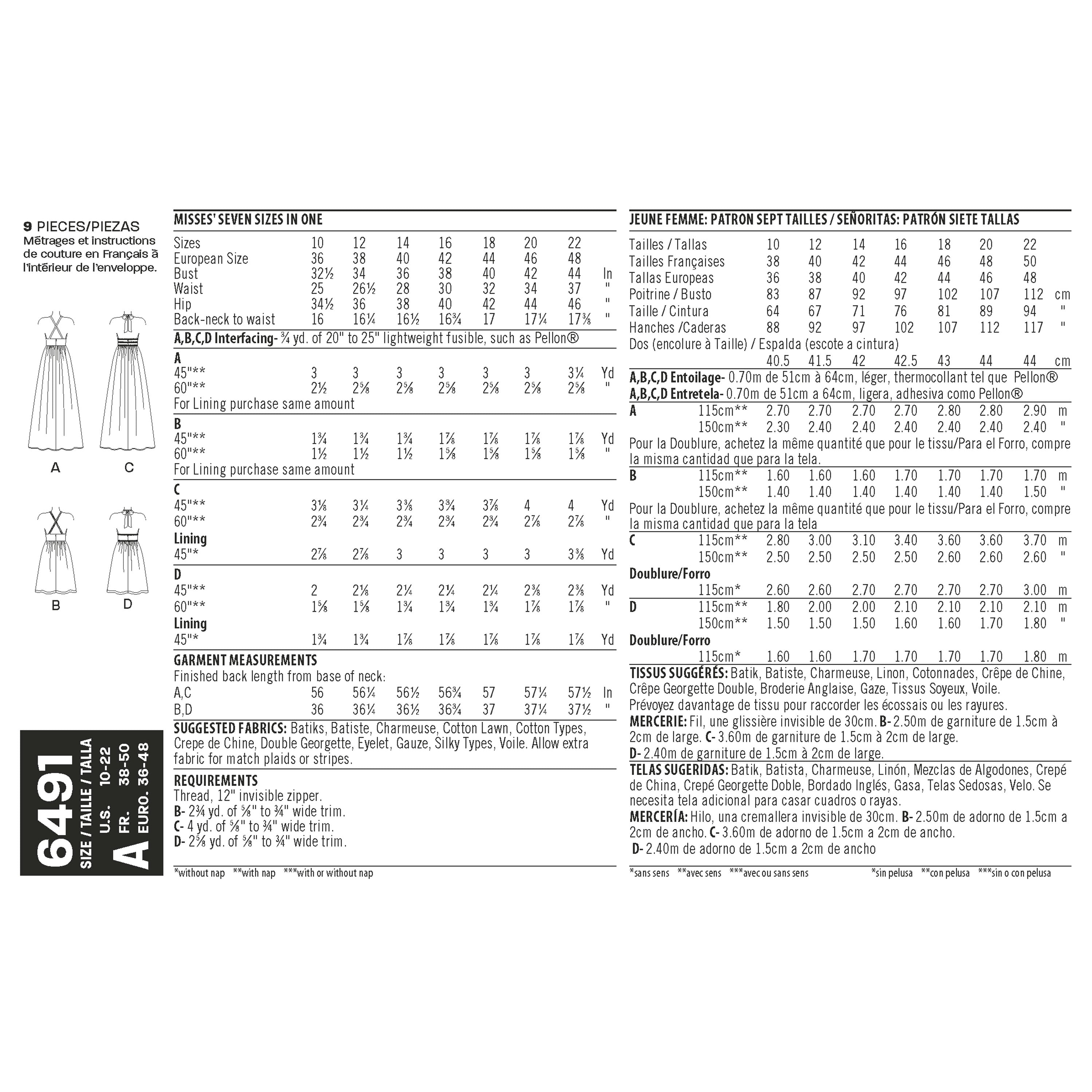New Look Sewing Pattern 6491 - Misses Dresses in two Lengths with Bodice Variations