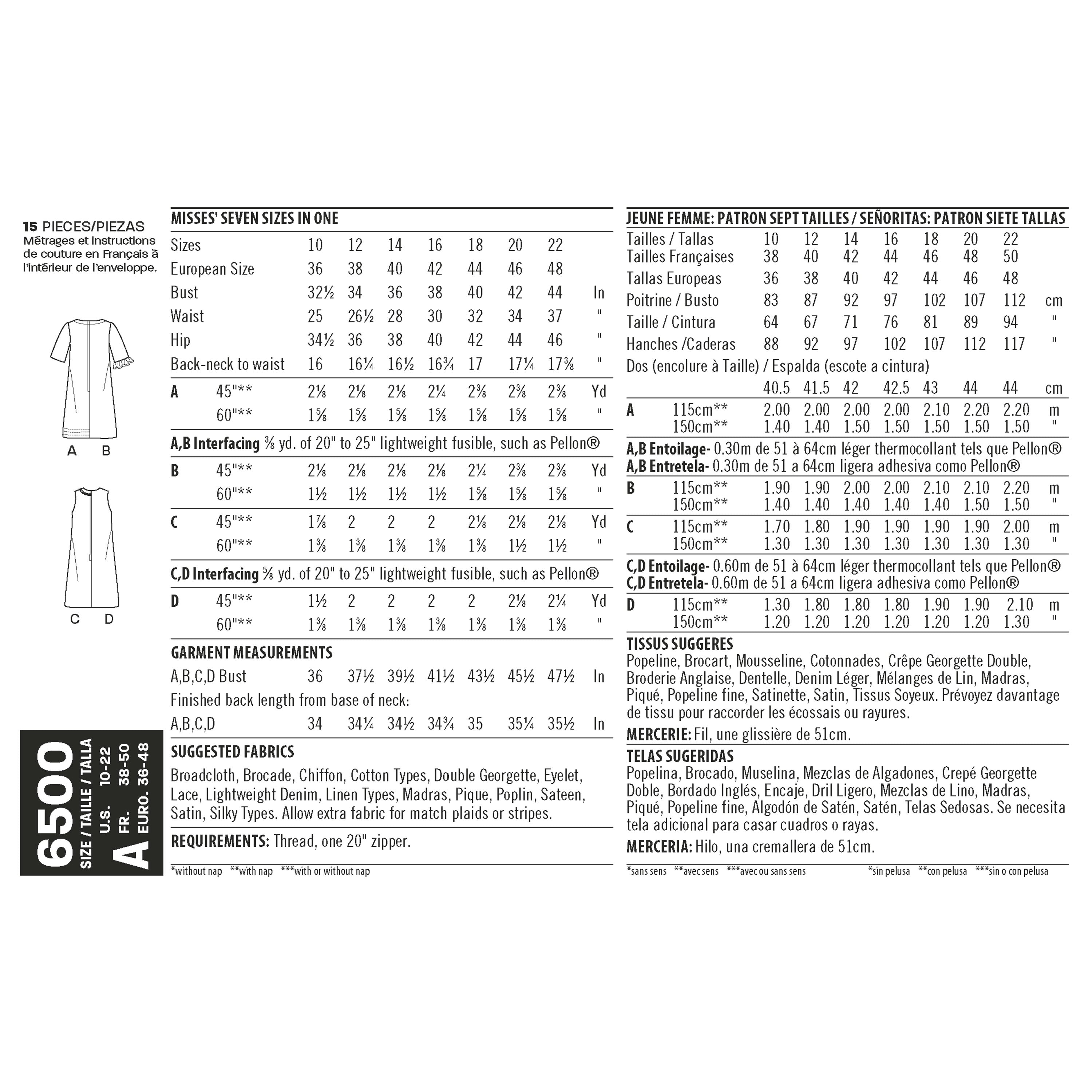 - Sizes A (10-12-14-16-18-20-22)