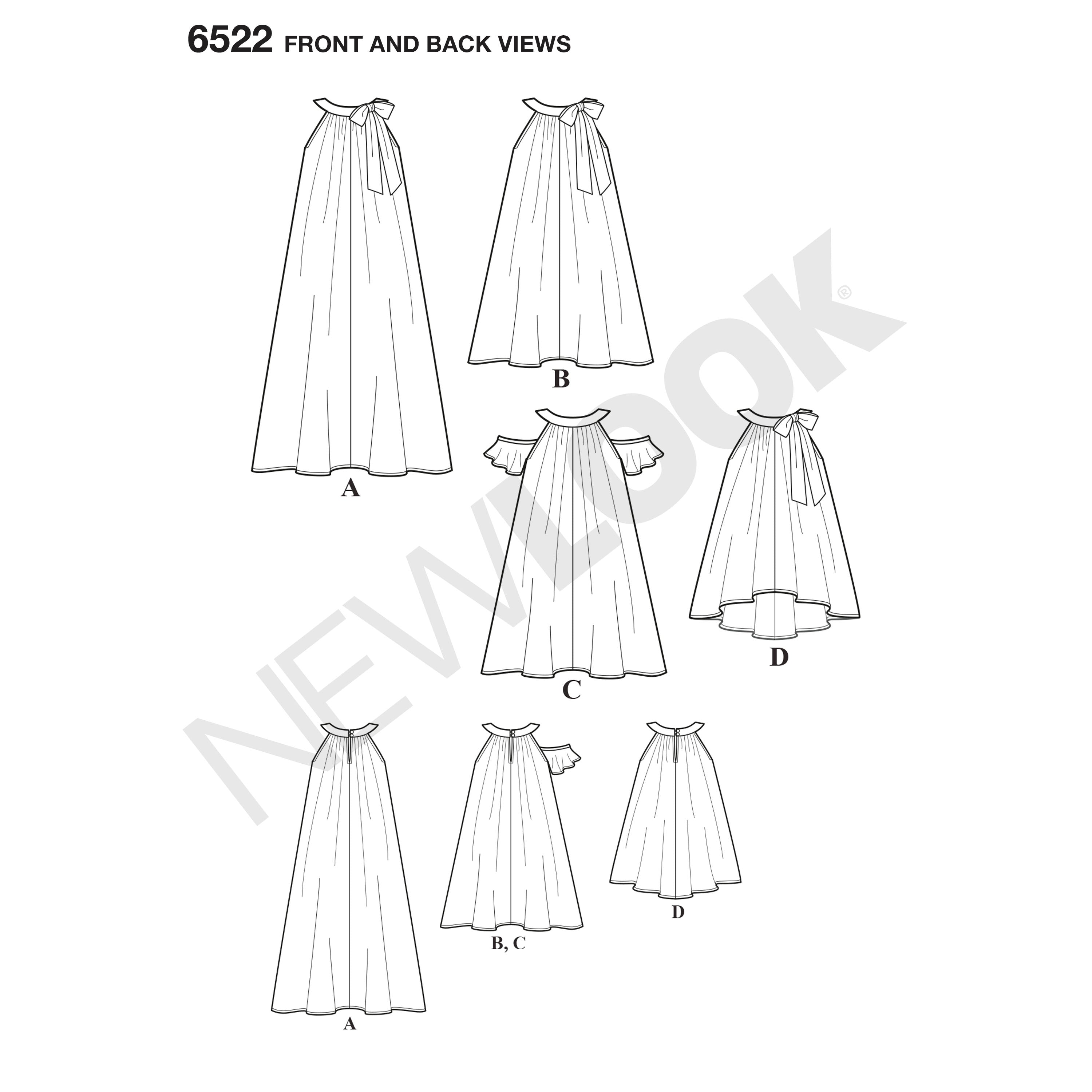 The perfect big sister little sister dresses for any summer party. Pattern includes maxi and above knee length dresses and a high low hem top. Dresses and tops can be made sleeveless with a large bow tie at neck or with a cold shoulder sleeve. All views have back keyhole opening at the collar. New Look Sewing patterns are always all sizes in one at one low price.