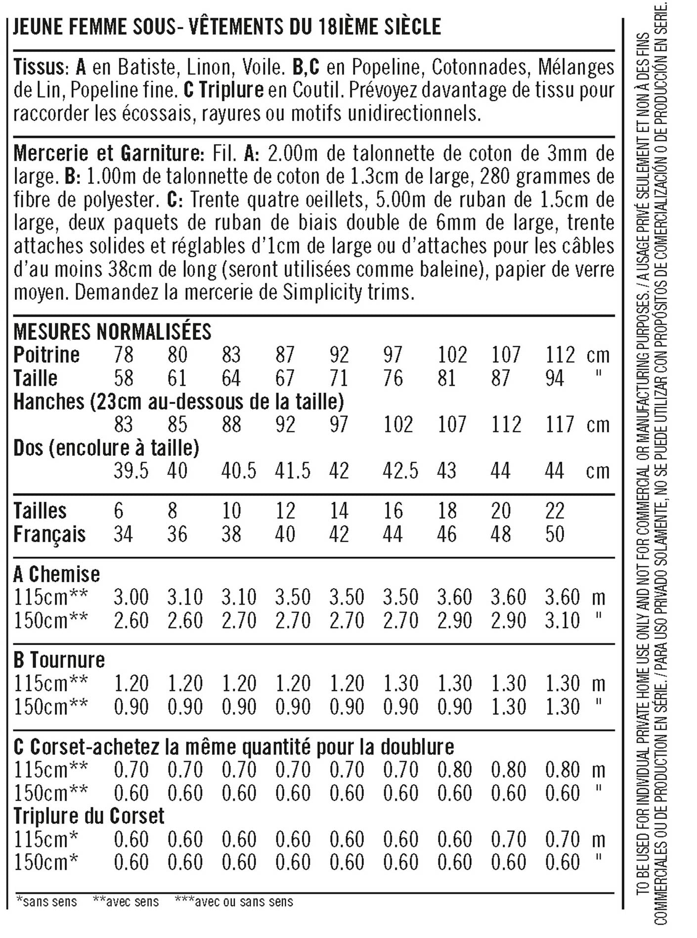 Simplicity Sewing Pattern 8162 - Women's 18th Century Undergarments