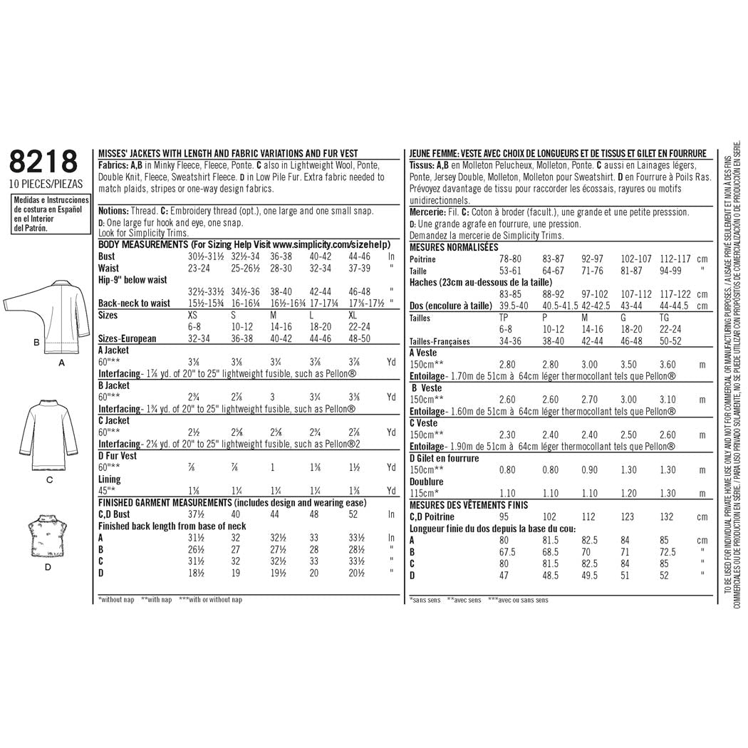 Simplicity Sewing Pattern 8218 - Women's Easy-to-Sew Jackets and Vest