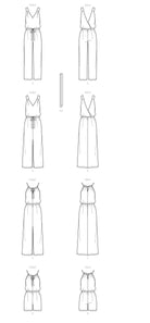 This easy-to-sew pattern includes long dress and long or short jumper. Neckline options are V-neck or scoop with sliding tie. Back is either a crossover or slit—see front/back view tab for details.