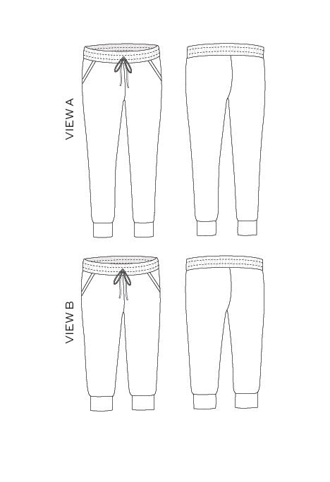 The Hudson pants are a pair of easy-wear knit bottoms that are ideal for lounging around and sports, depending on how you like to spend your time. They feature a roomy hip which tapers down to a slim leg and fitted cuffed ankles, plus ever-handy pockets! Dress up or down with your fabric choice, and choose from full length or mid-calf length.