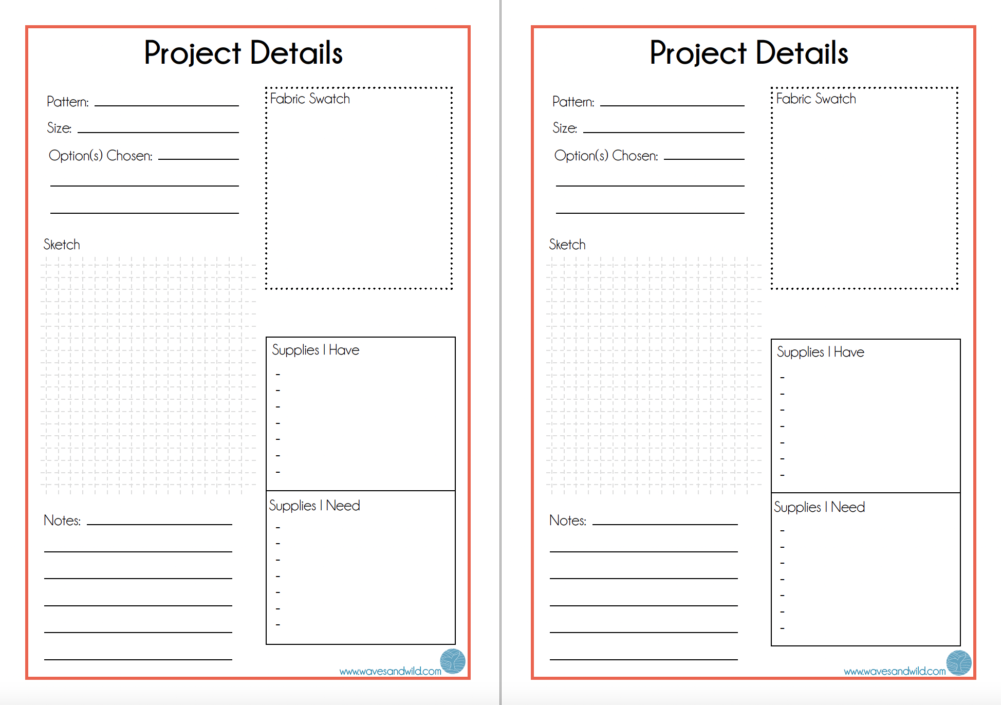 Waves & Wild Sewing Planner - PDF sewing pattern