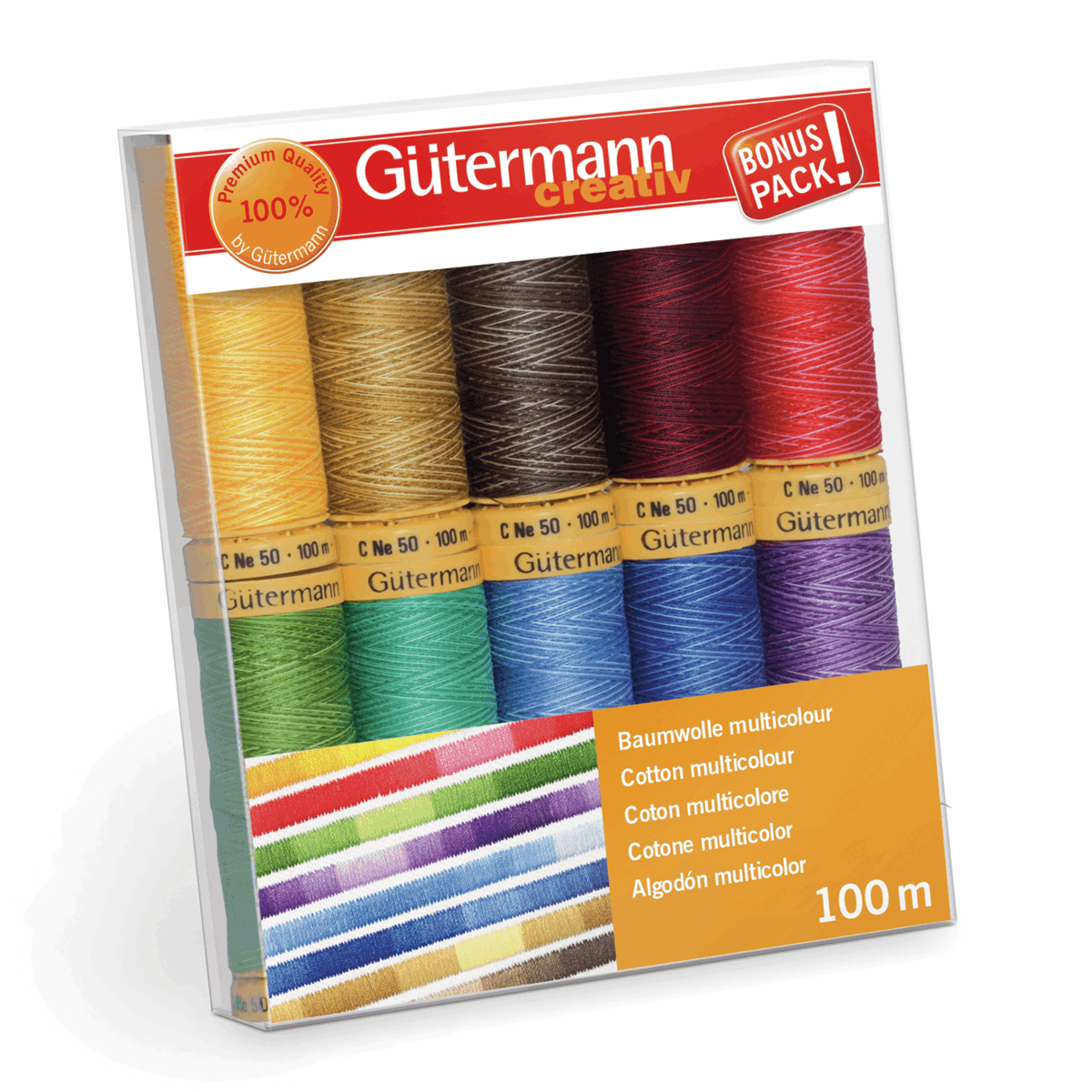 - Includes 10x 100m Natural Cotton 50 multicolour spools