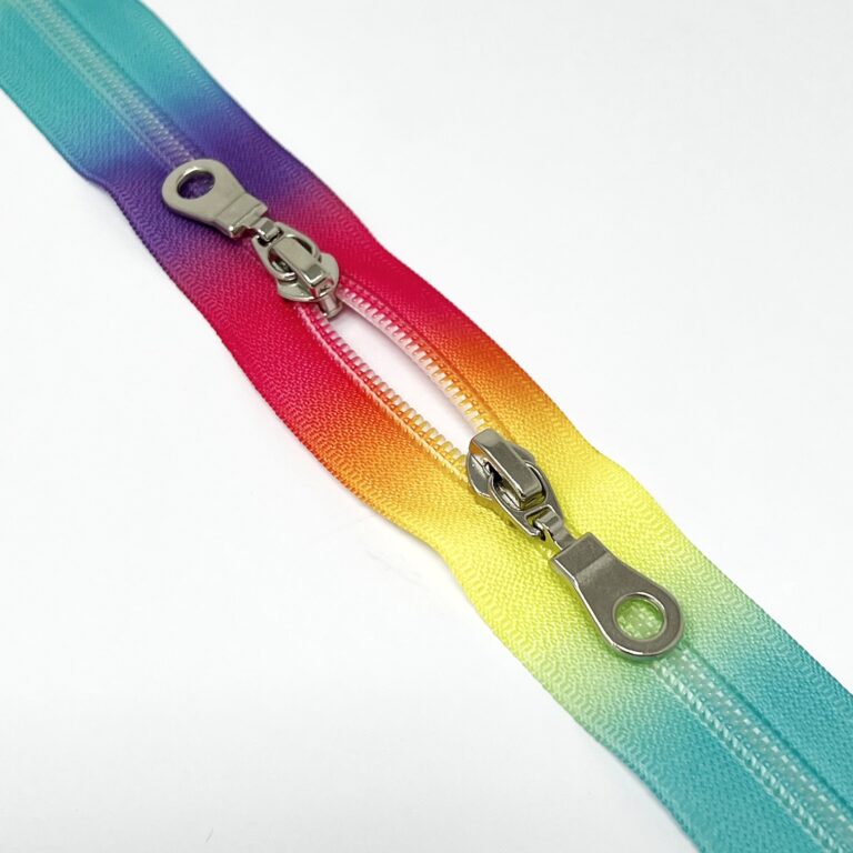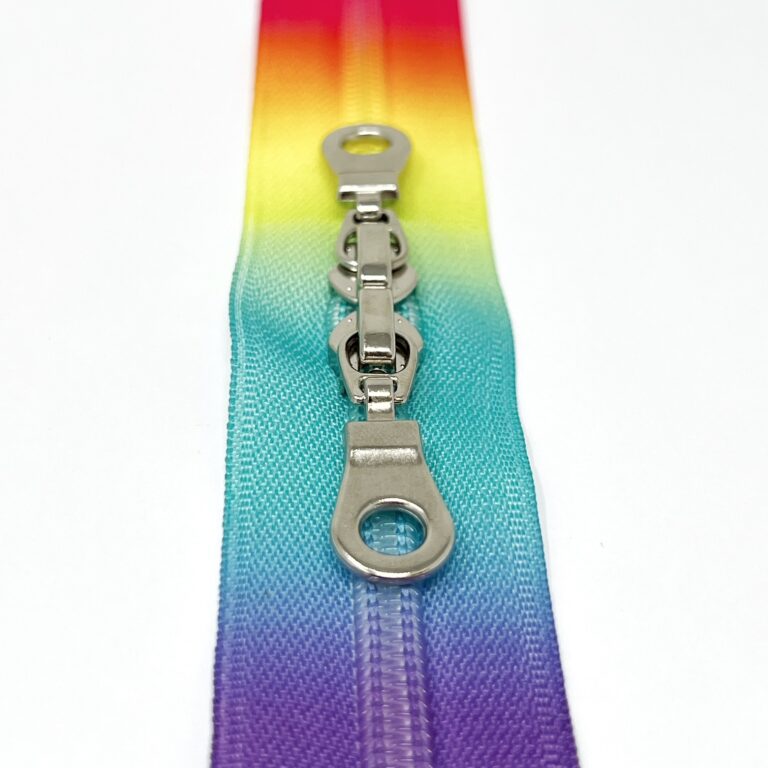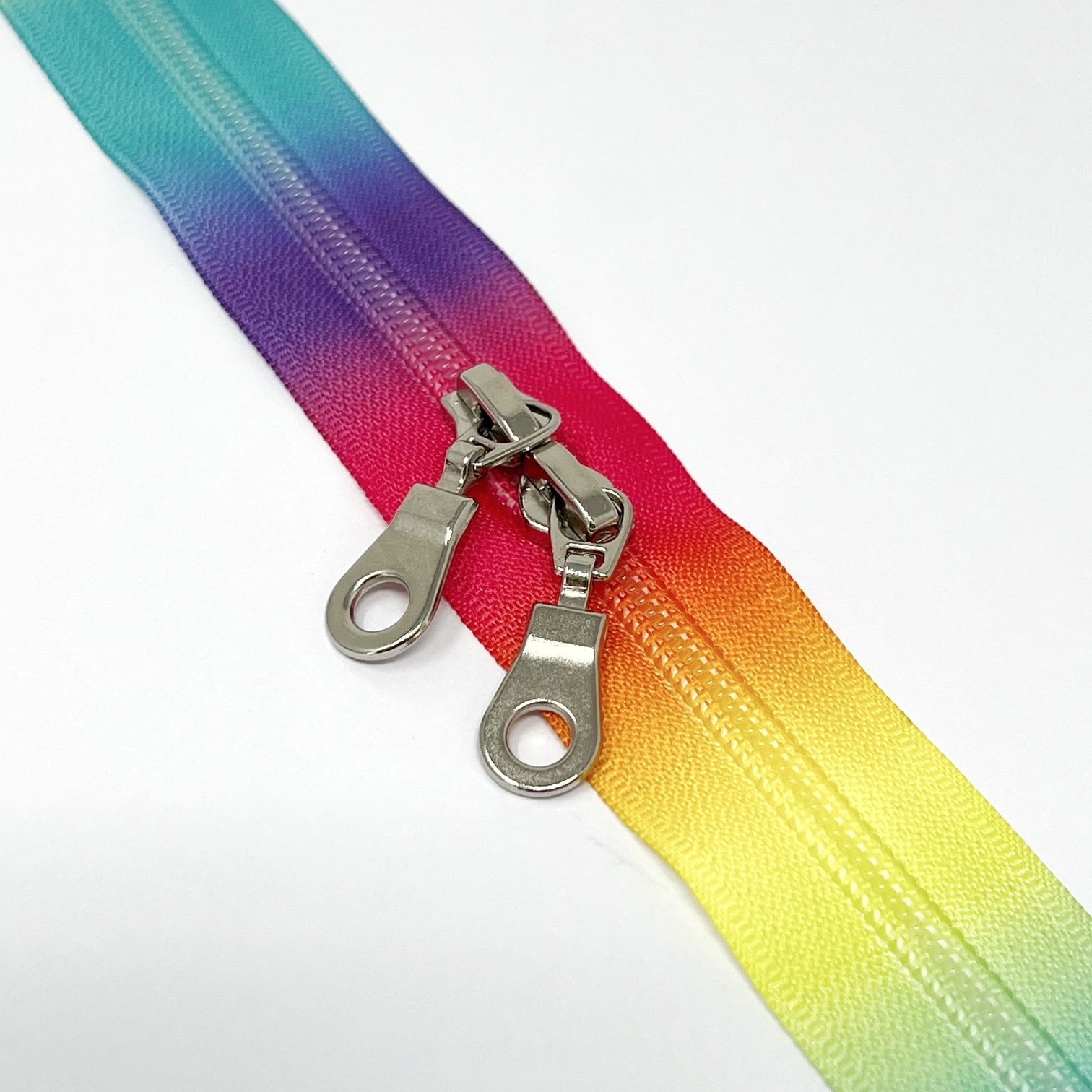 These fun rainbow zips feature a special rainbow ombre zip tape, and a double zip pull to add a special finish to your project - great for colorful bags and accessories!