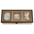 Pretty yet practical, it's divided into three compartments on the inside, which makes it ideal for smaller items that you don't want to get lost. It's finished with some beautiful detailing including some handdrawn-style illustrations on top of the clear lid.