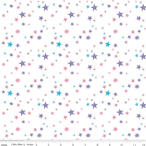 Riley Blake Uni the Unicorn - Stars White - 100% Cotton Fabric