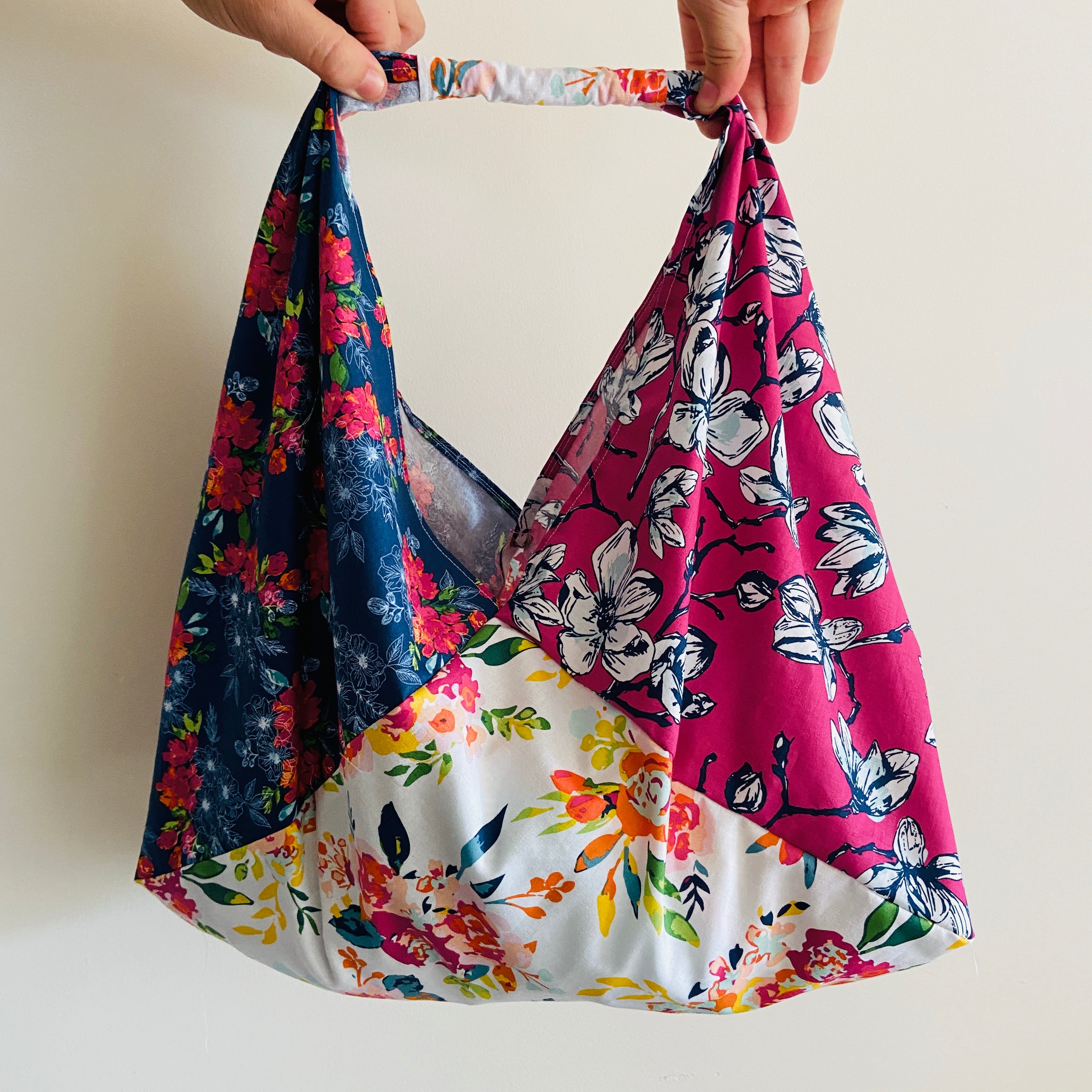 Make a stylish and easy-to-carry sling bag for yourself or a friend with this simple pattern. You'll be able to make your own unlined bag in just one afternoon, made using just 3 fat quarters and great for carrying items from the supermarket or to the beach.