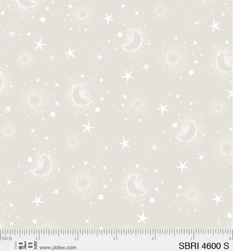 P&B Textiles Star Bright - Moons and Stars Grey - 100% Cotton Fabric