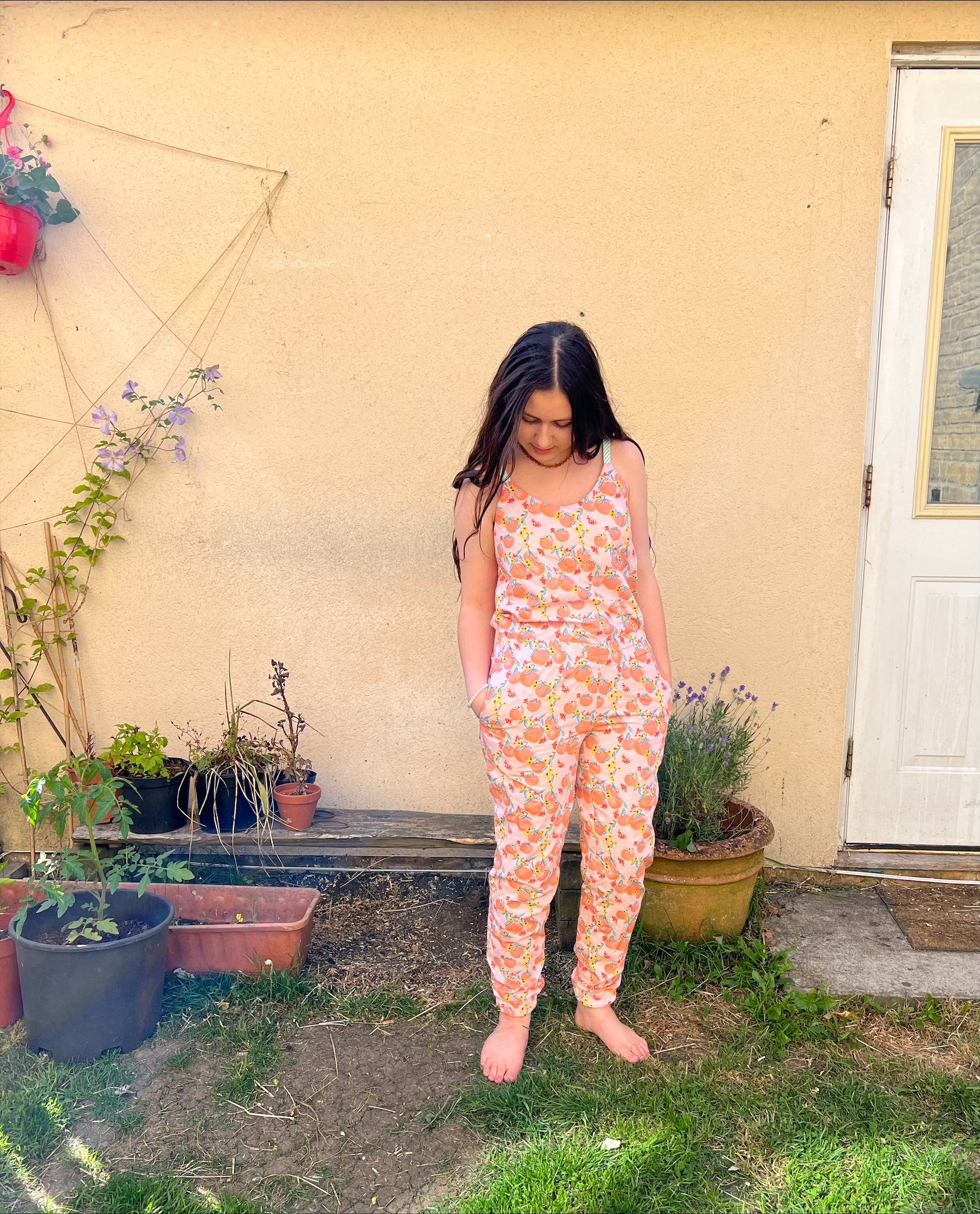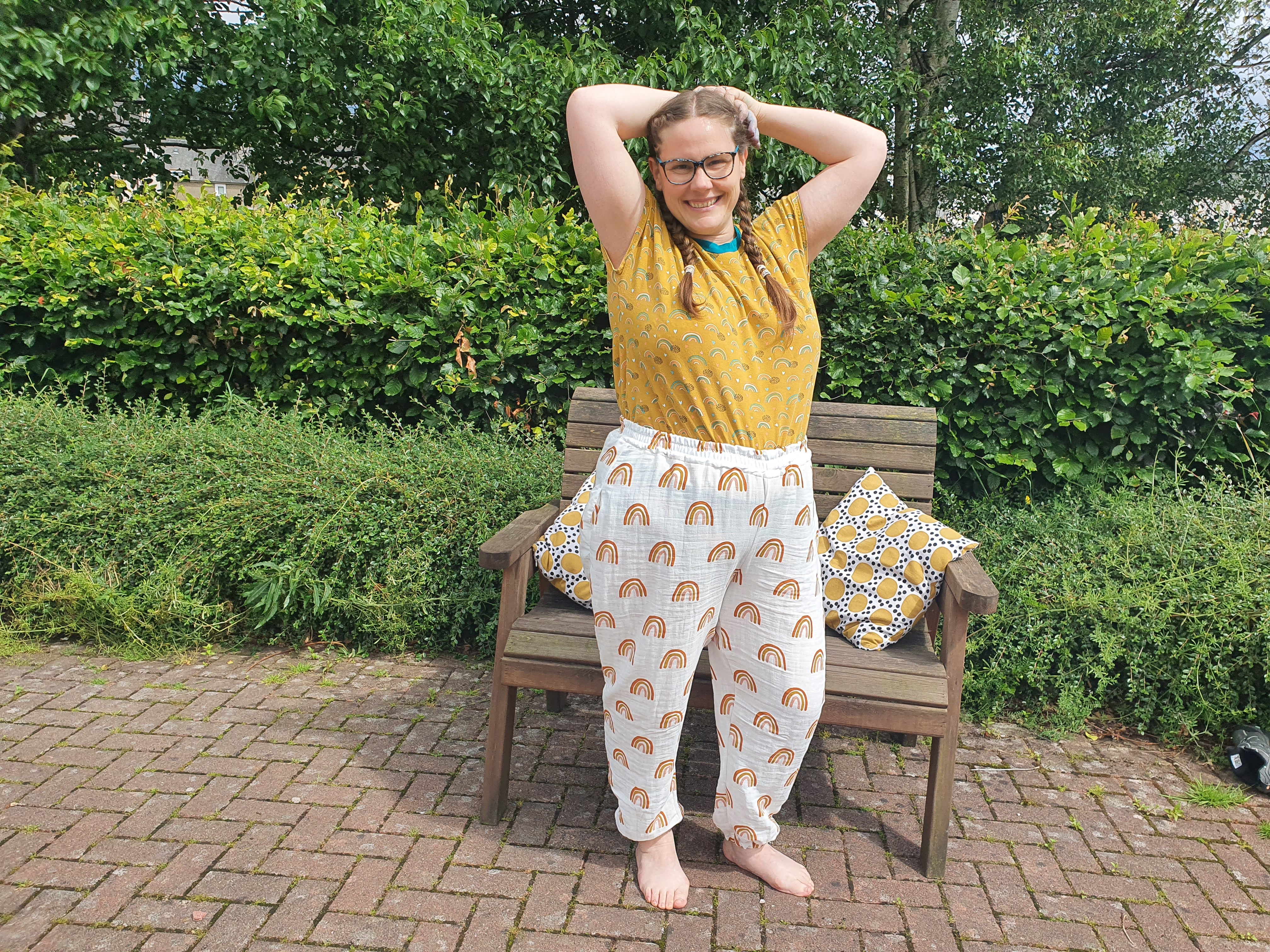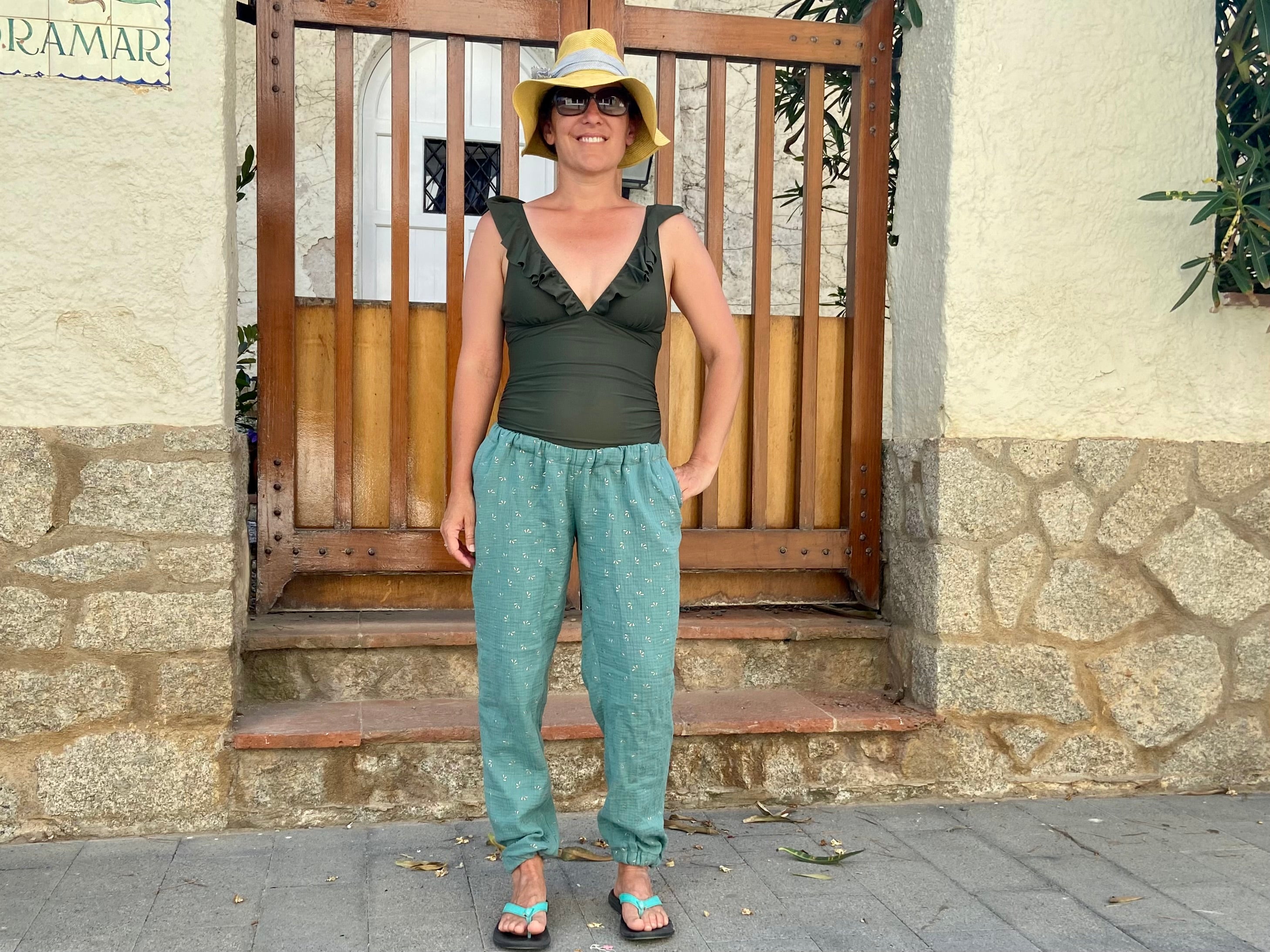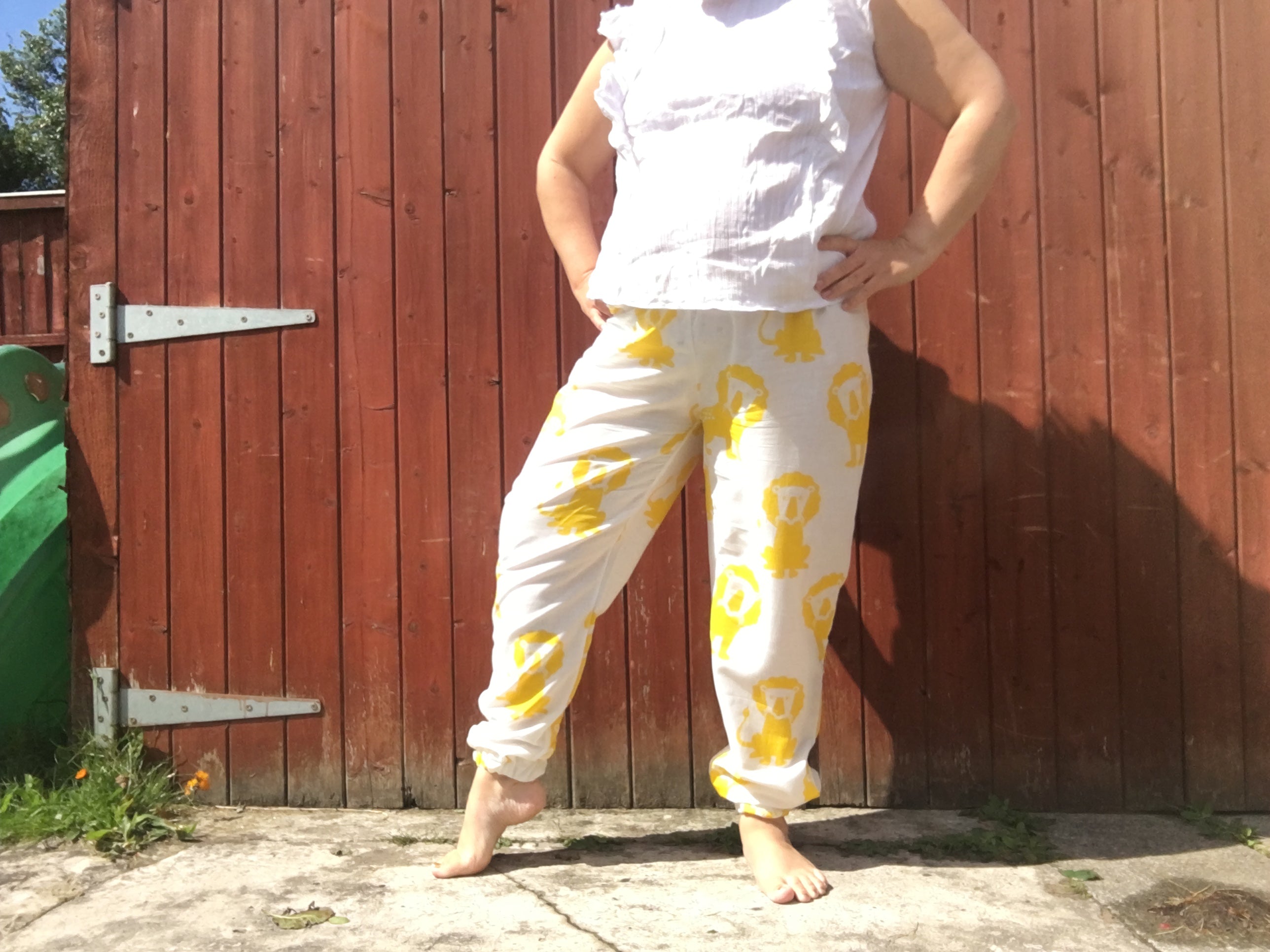 The Wayfinder is a relaxed, woven pants/trousers pattern. It has an elasticated waist and elasticated ankles. There is the option to add a real or faux drawstring and inseam pockets. There are low rise and mid rise options.