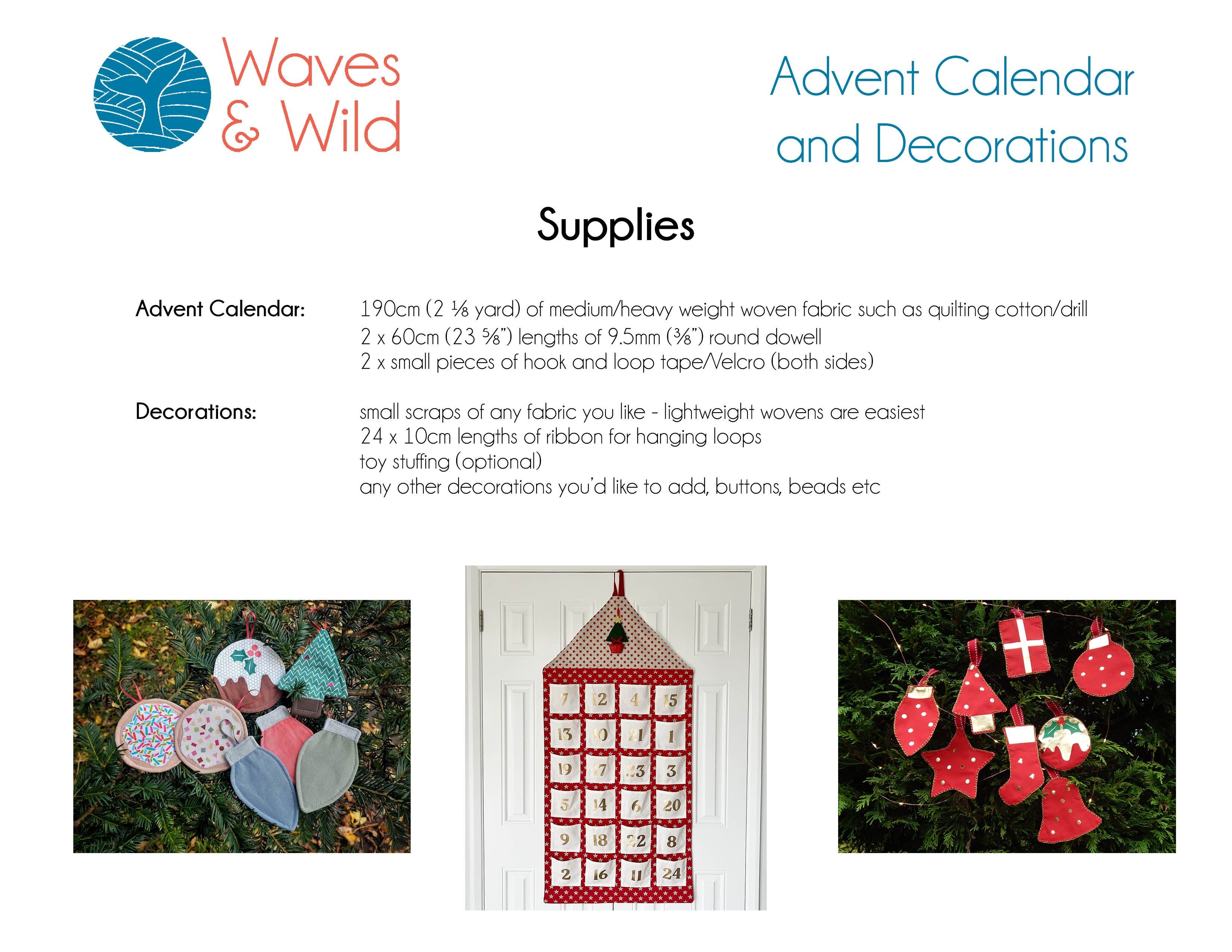 Waves & Wild Advent Calendar and Decorations - PDF sewing pattern