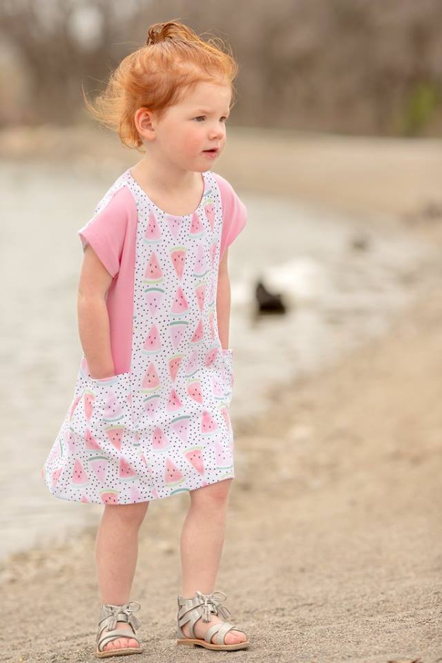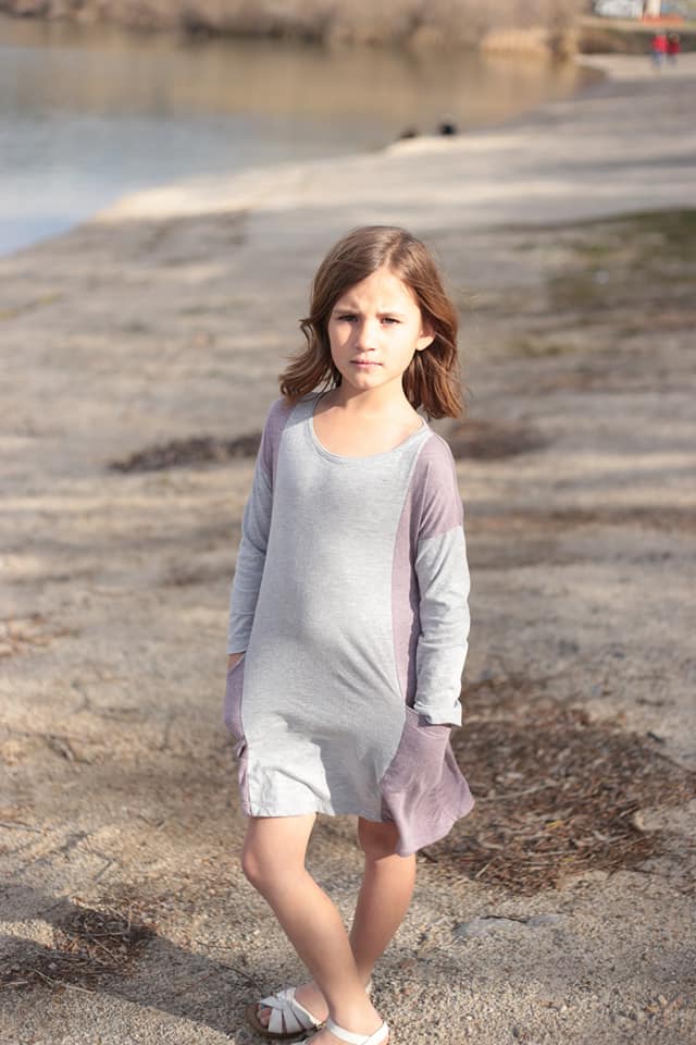 he Child Beachcomber is a relaxed fit dolman style top. Choose between a longer length t-shirt, a tunic or a dress. There are options for short/long sleeves, colour blocking and two neckband styles. Additionally, deep pockets can be added to the tunic and dress.