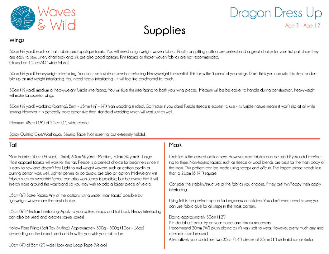 Waves & Wild Children's Dragon Dress Up - PDF sewing pattern
