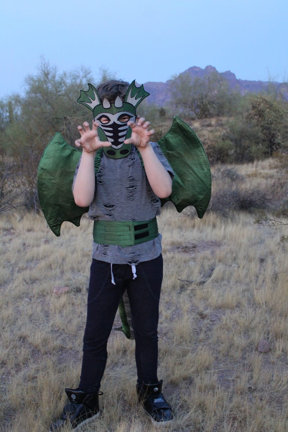 The Dragon Dress Up pattern has three parts to turn your little one into the perfect dragon: wings, tail and mask.
