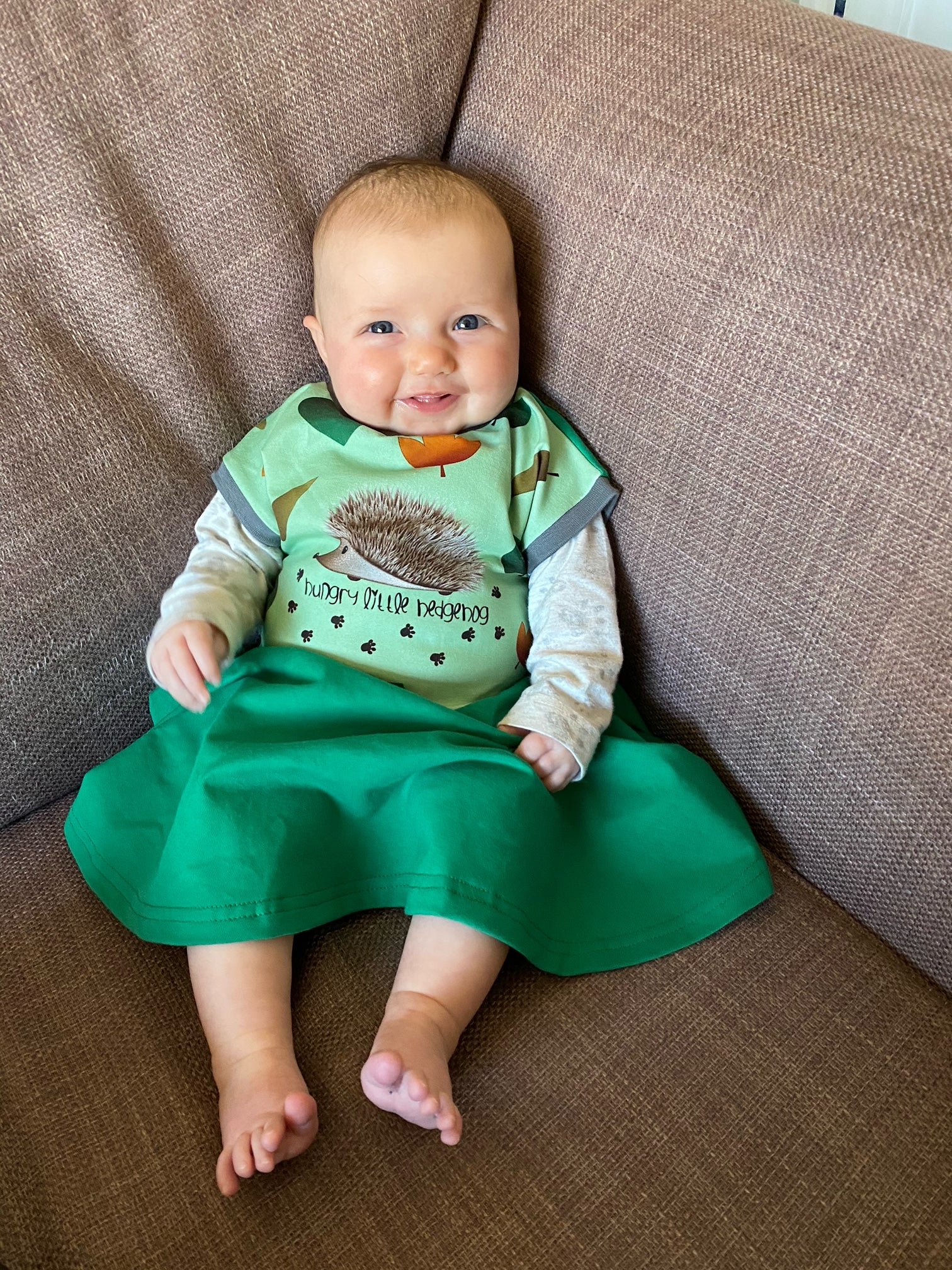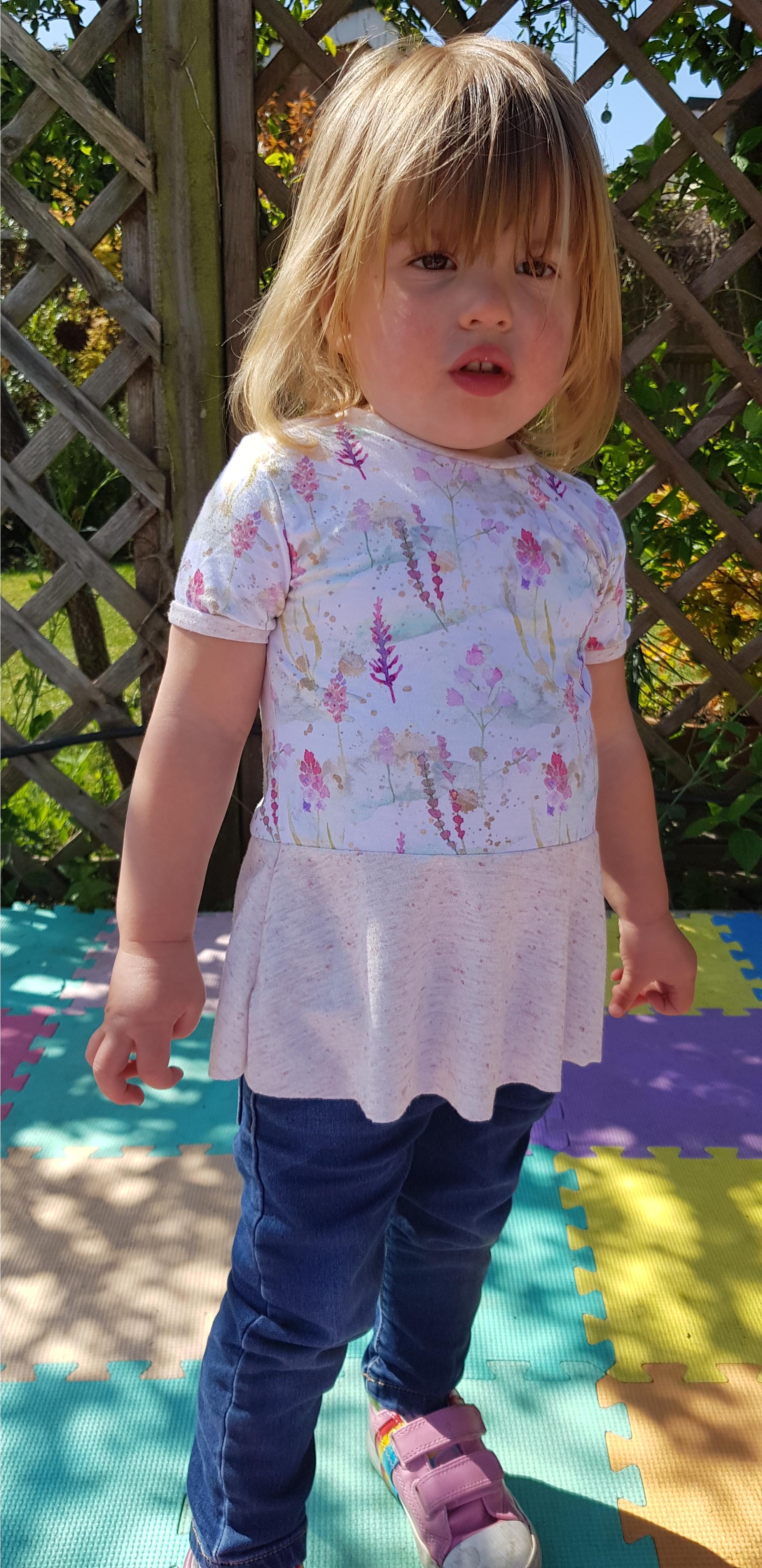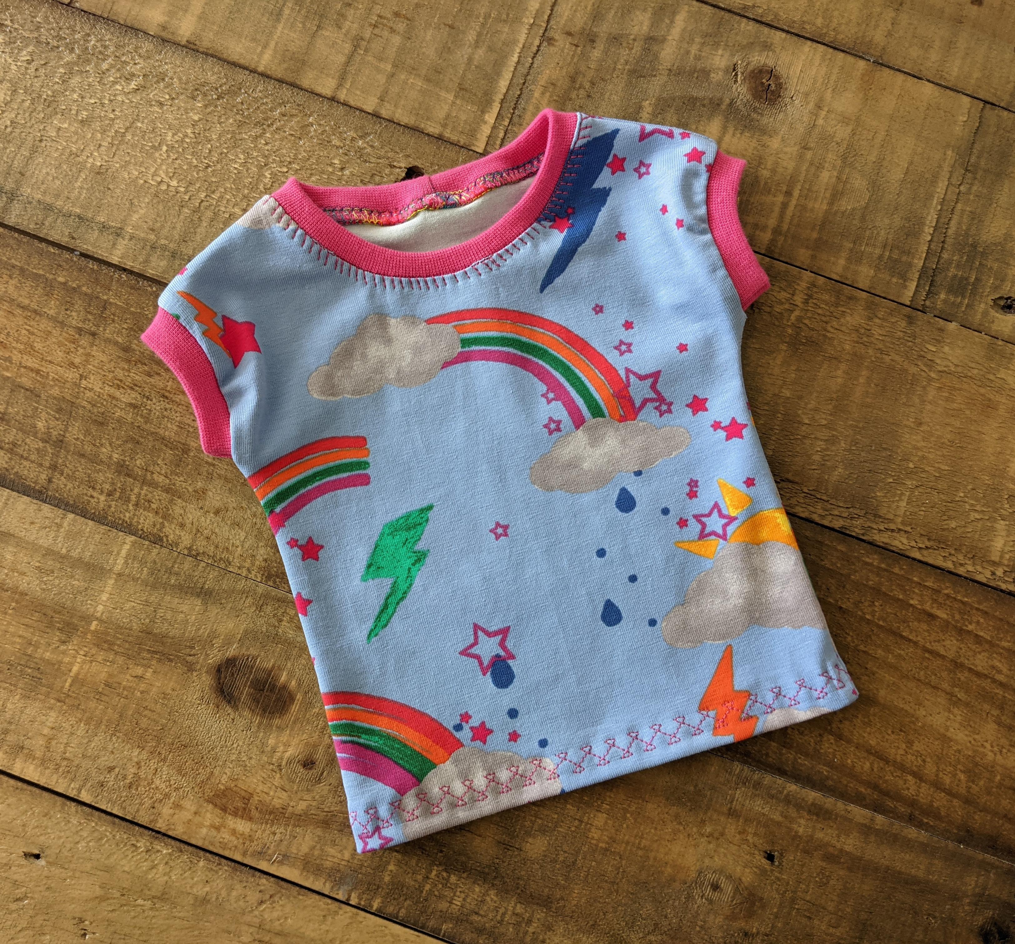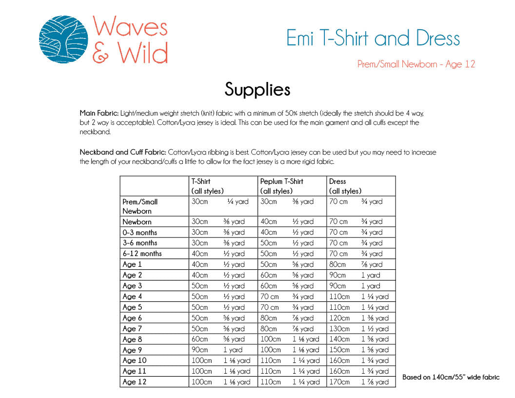 The Emi T-Shirt and Dress pattern goes from prem./small newborn right up to age 12. It is suitable for enthusiastic beginners.