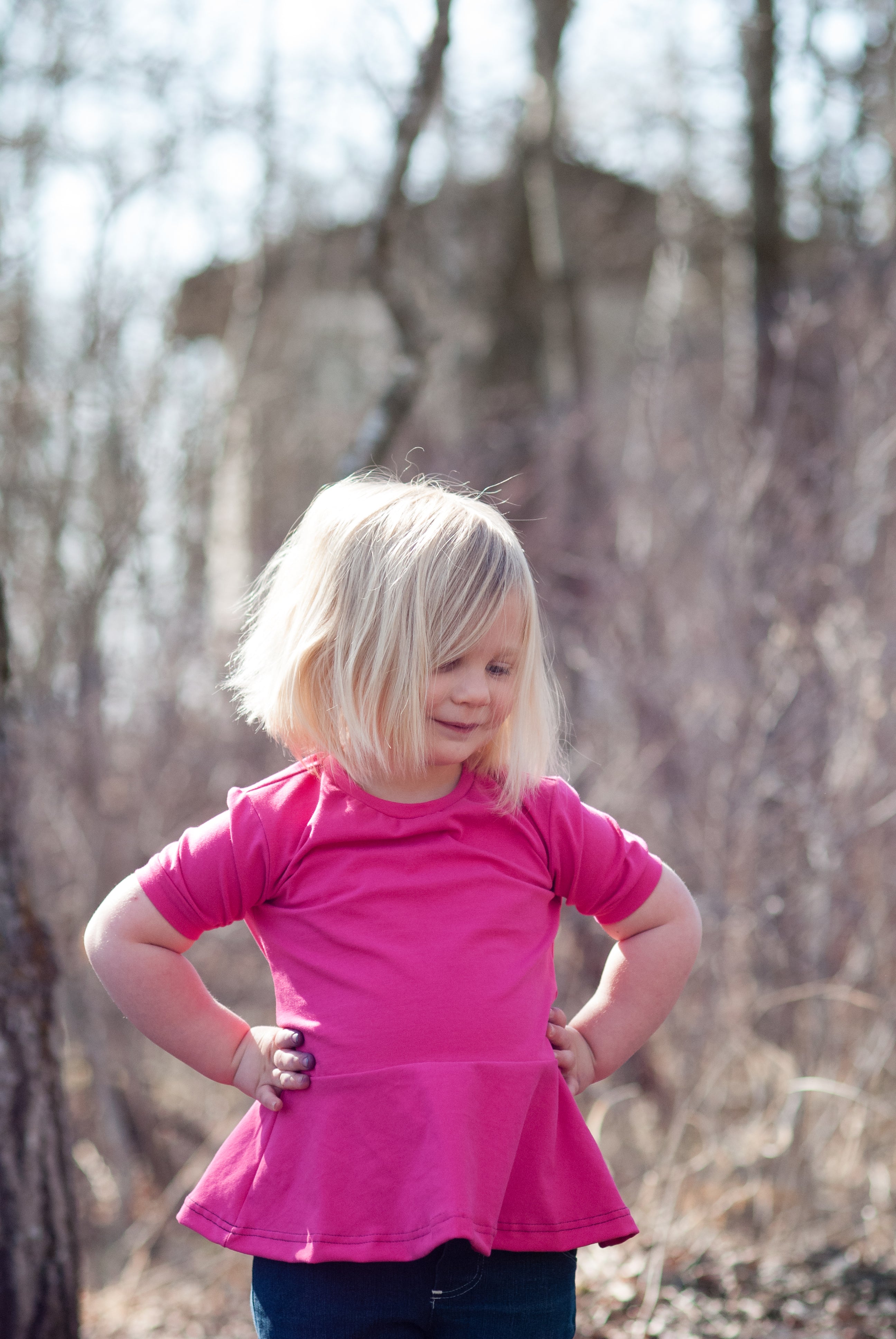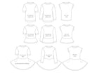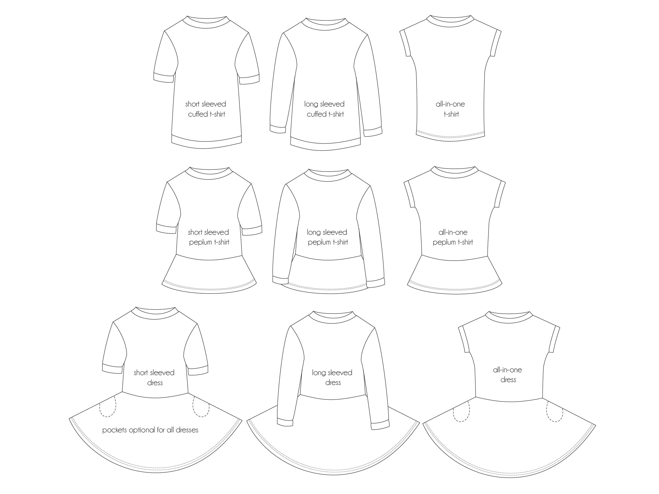 The Emi T-Shirt and Dress is a wonderfully versatile pattern. There are options for a t-shirt, peplum t-shirt or dress with a circle skirt. Choose from long or short sleeves with cuffs, or an all-in-one sleeve. The dress can have in-seam pockets.