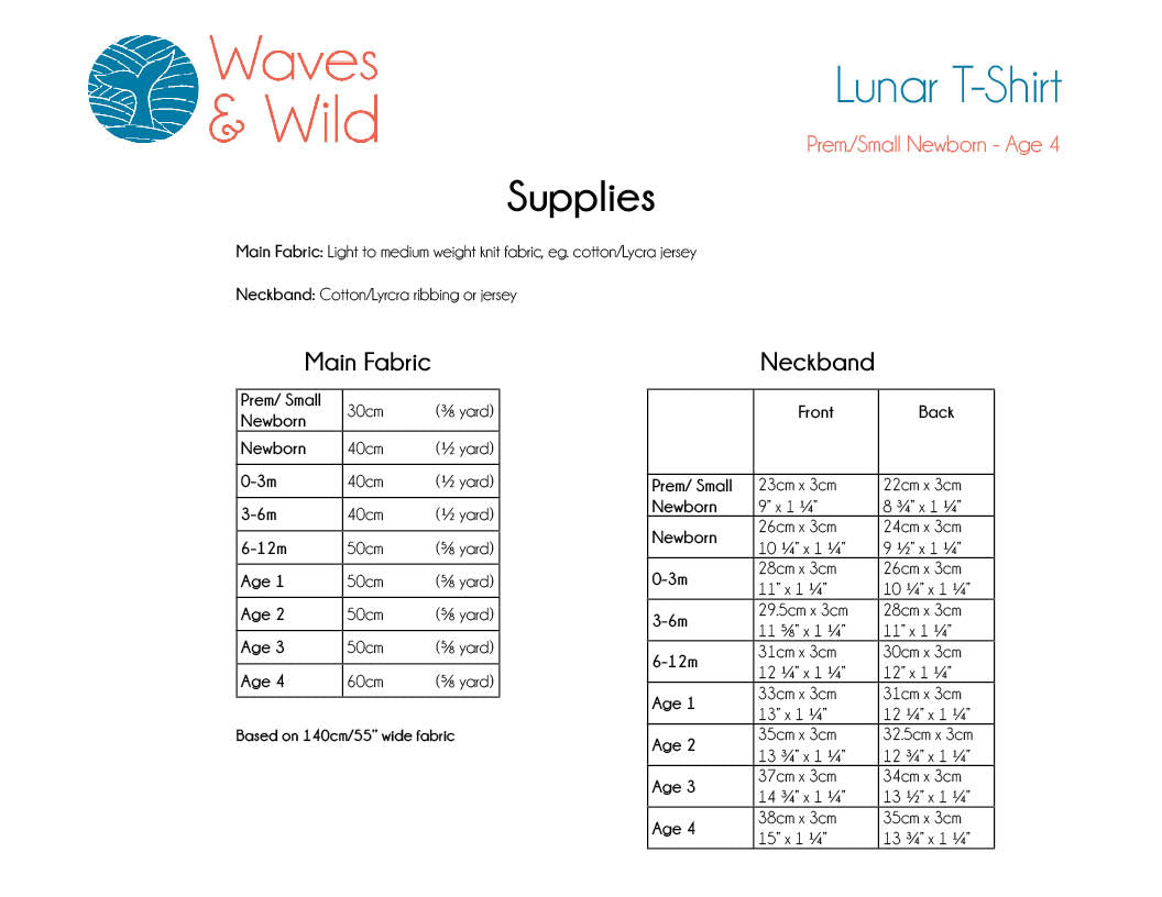 Waves & Wild Children's Lunar T-Shirt - PDF sewing pattern