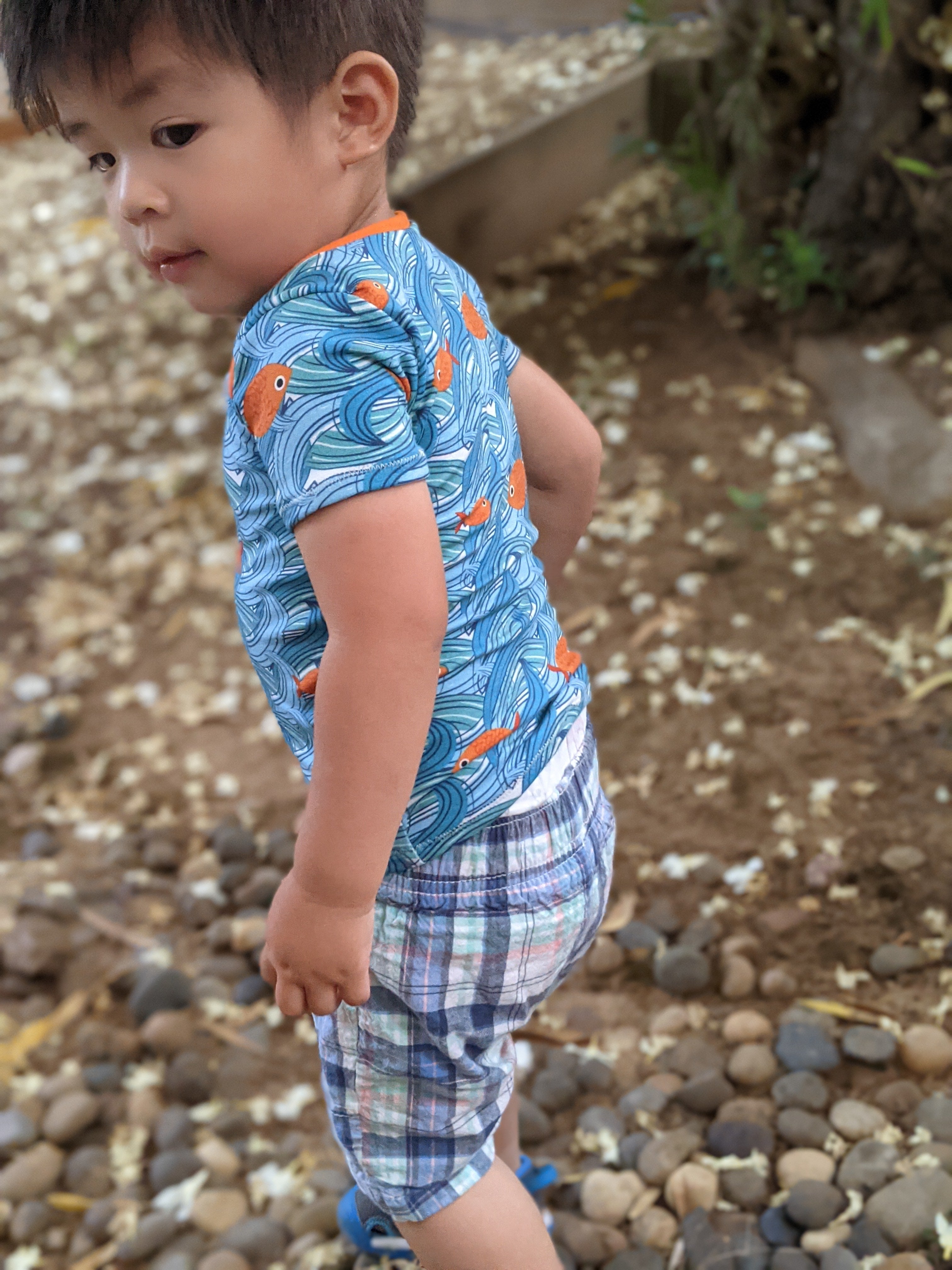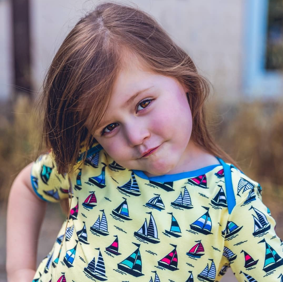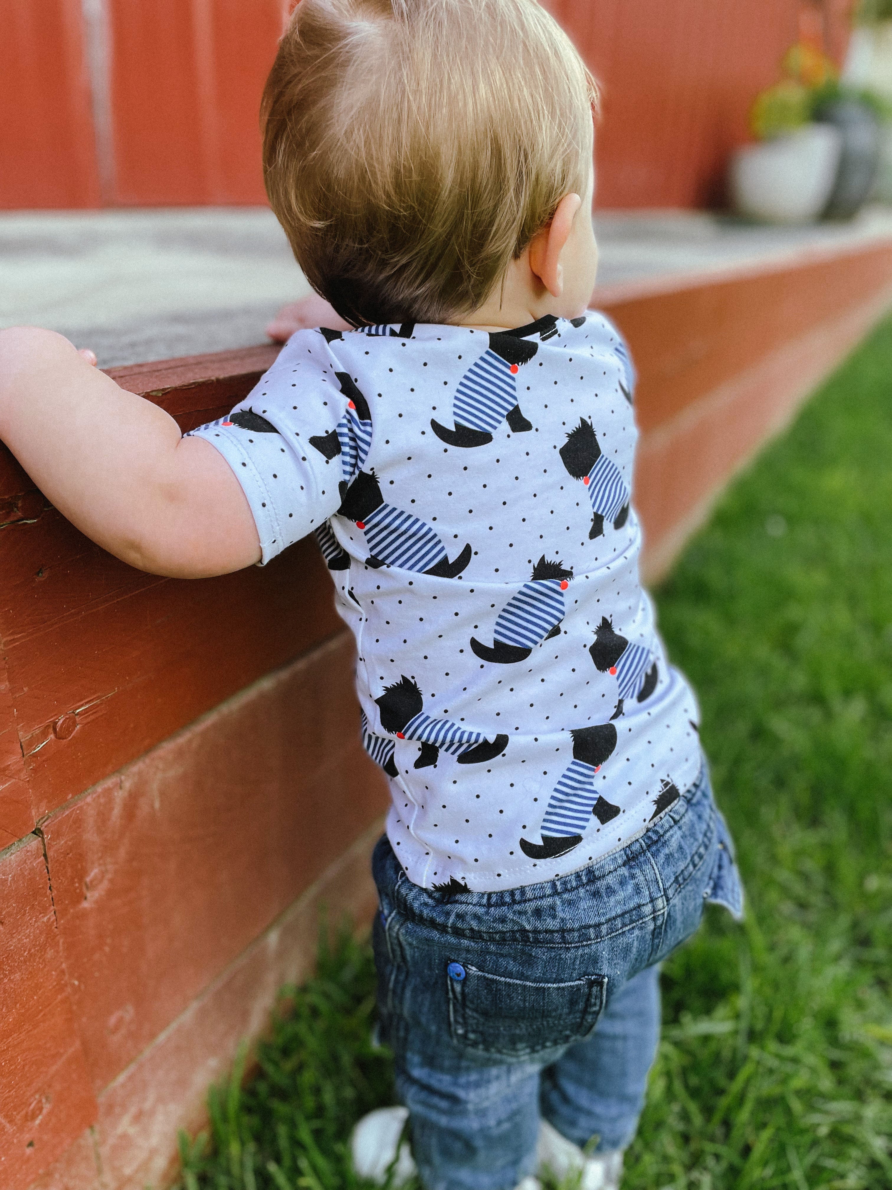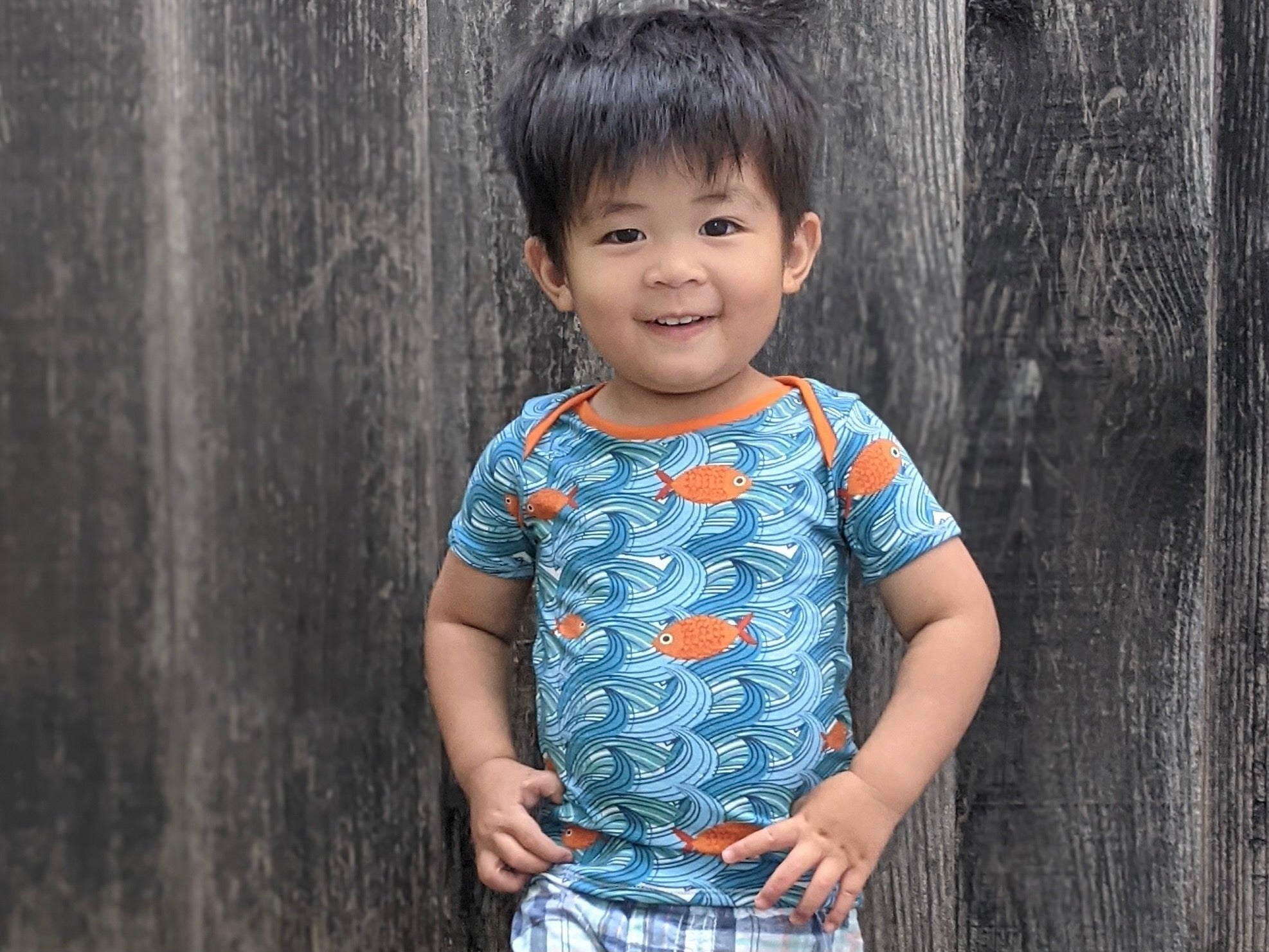 The Lunar is a slim-fitting envelope neck (lap-neck) t-shirt sewing pattern which goes from prem./small newborn up to Age 4.