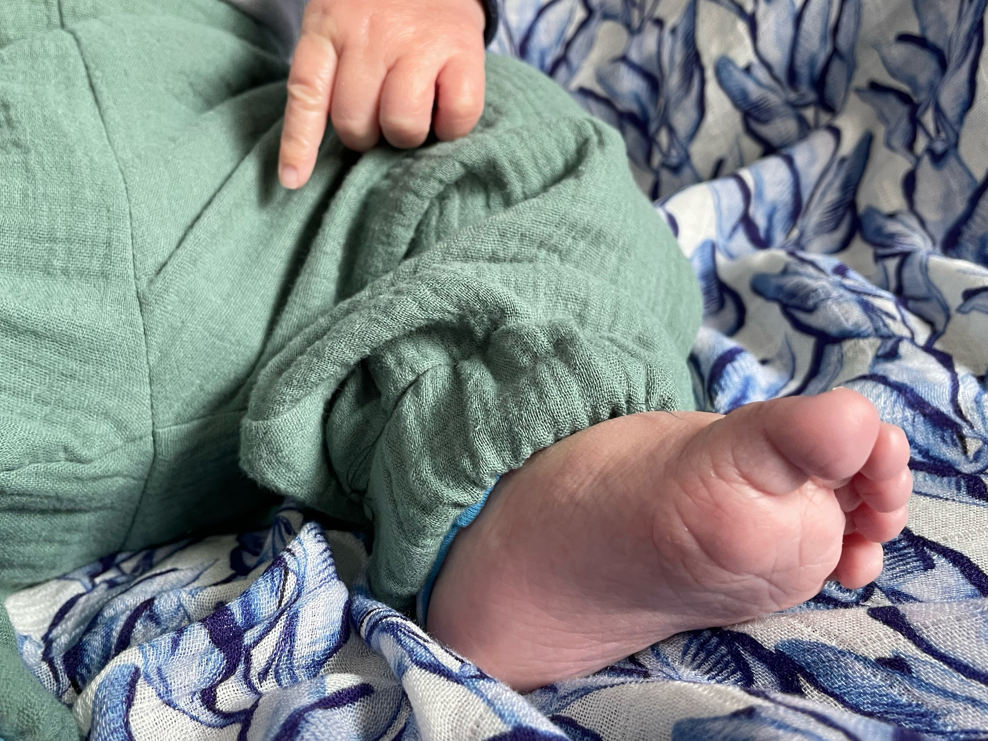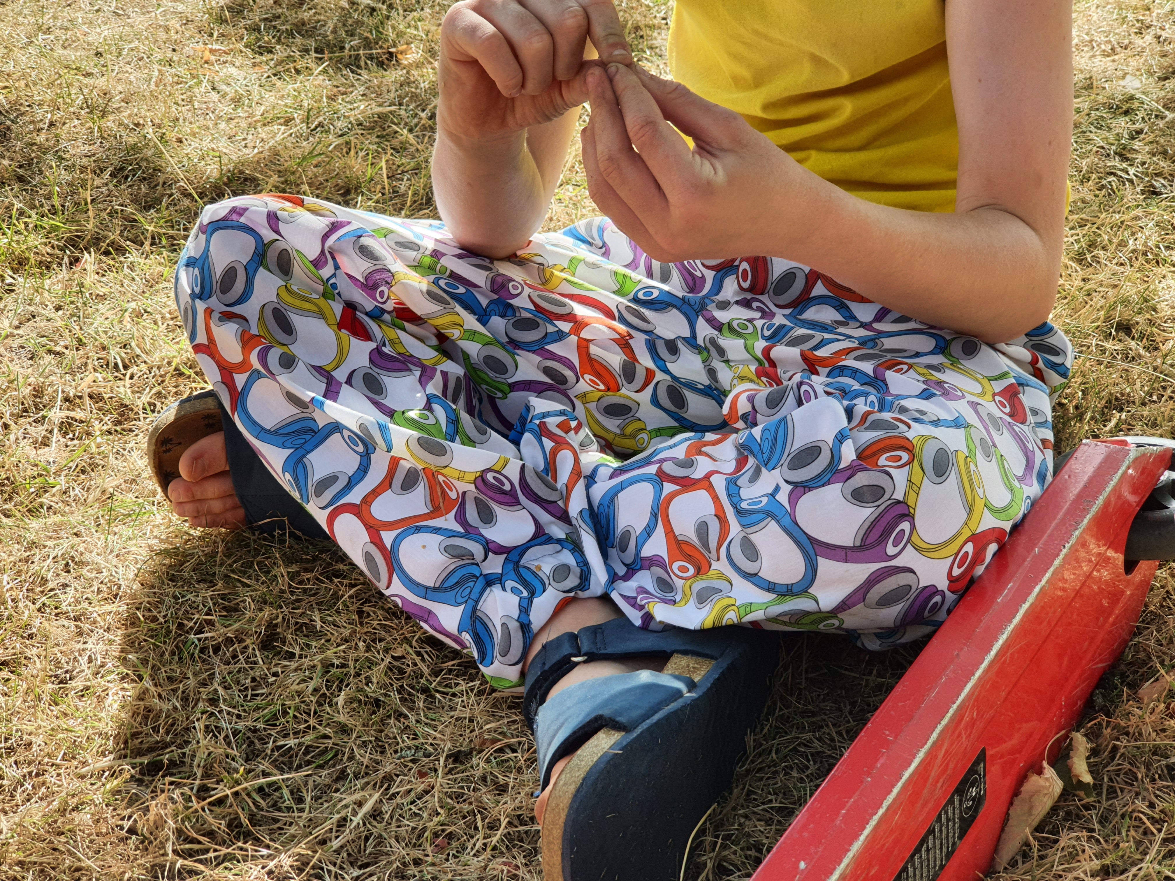 The Wayfinder pattern goes from prem./small newborn – age 12. There are additional, separate pattern pieces for prem./small newborn – age 4 for cloth nappy wearers.