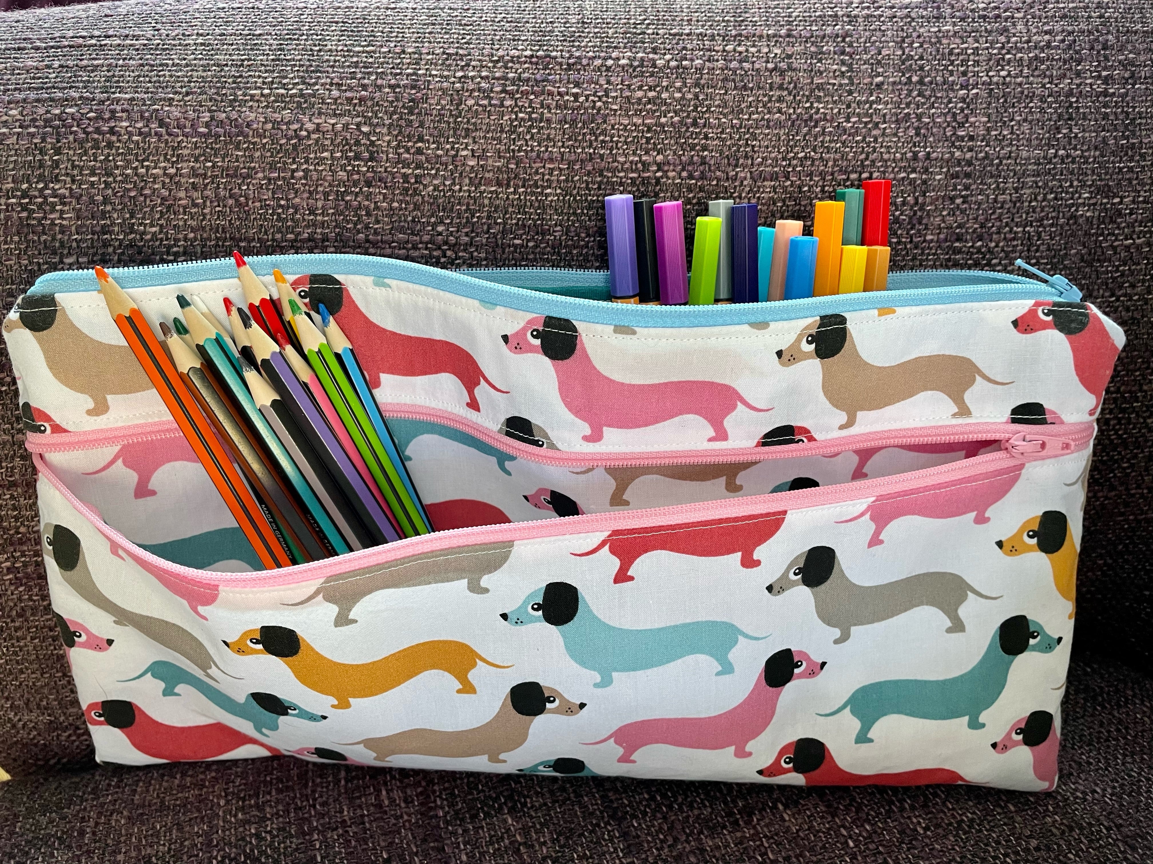The Double Cool Pencil Case pattern is the coolest way to carry your school supplies! There are two options - a single or a double design. Both fasten with a zip and both are fully lined.