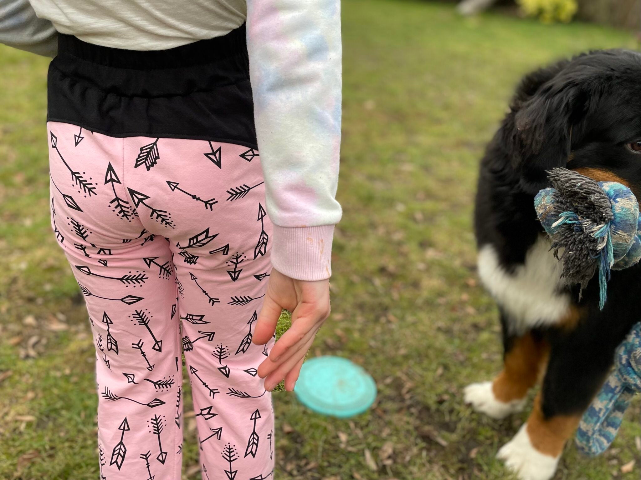 The Field Trip Joggers pattern is designed for mid-weight knit (stretch) fabrics. Only 10% – 50% horizontal stretch is required so this pattern is perfect for those cosy, low-stretch knit fabrics.