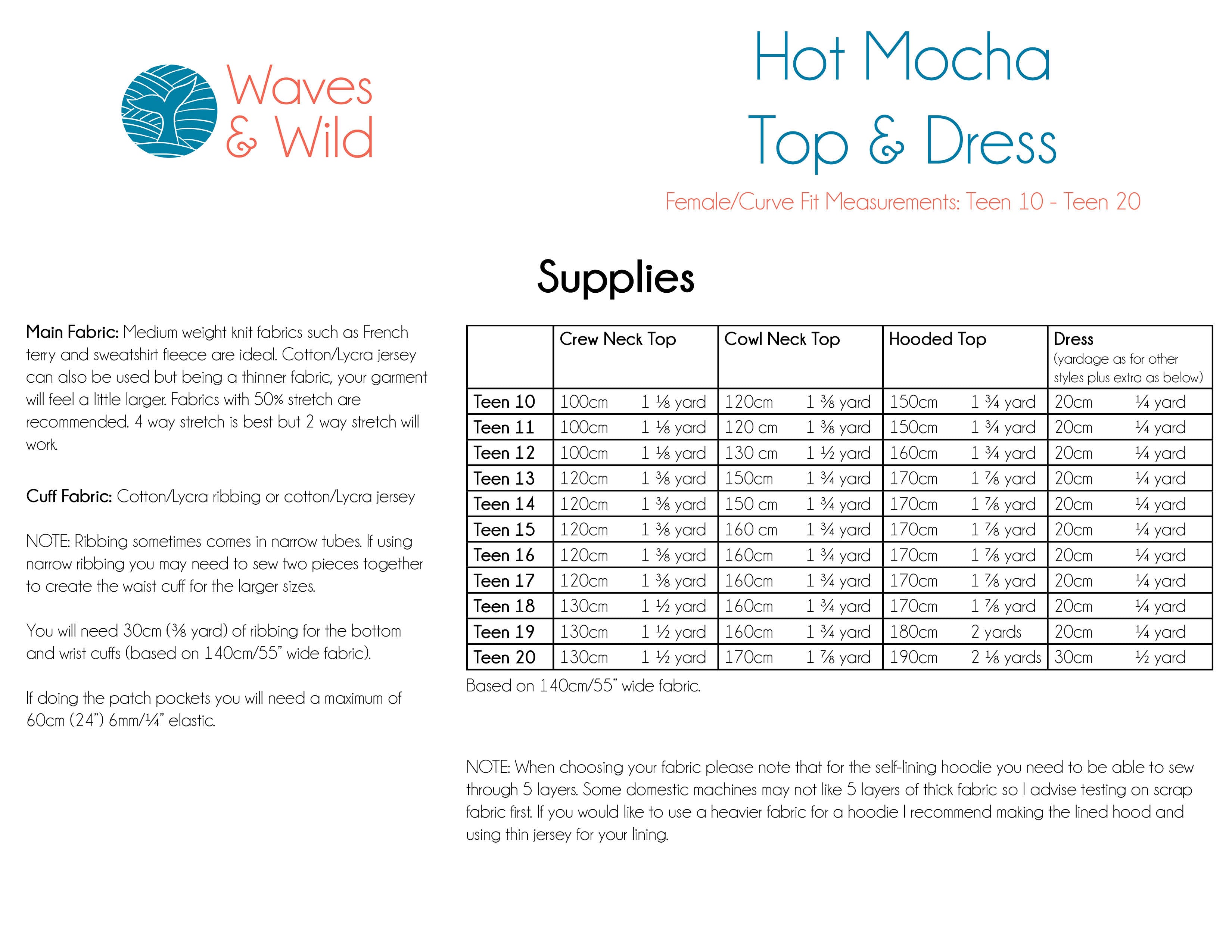For more photos, inspiration and assistance you are very welcome to join the Waves & Wild Facebook Group. Find the measurements charts for all Waves and Wild patterns here.