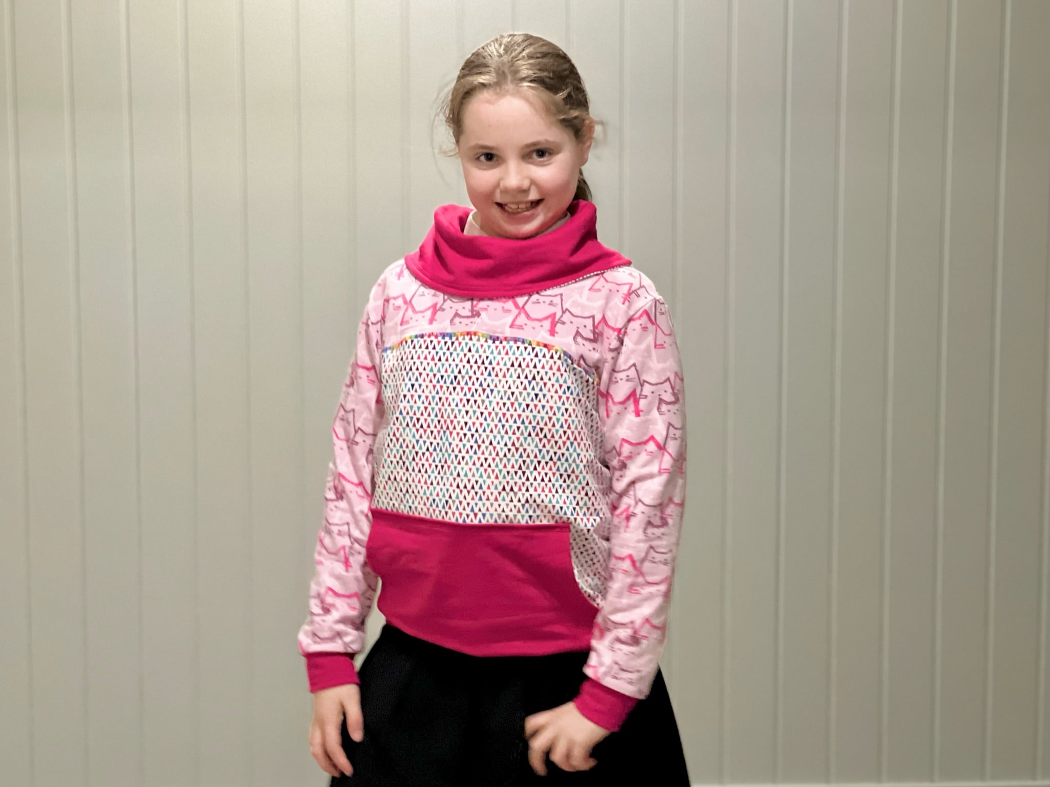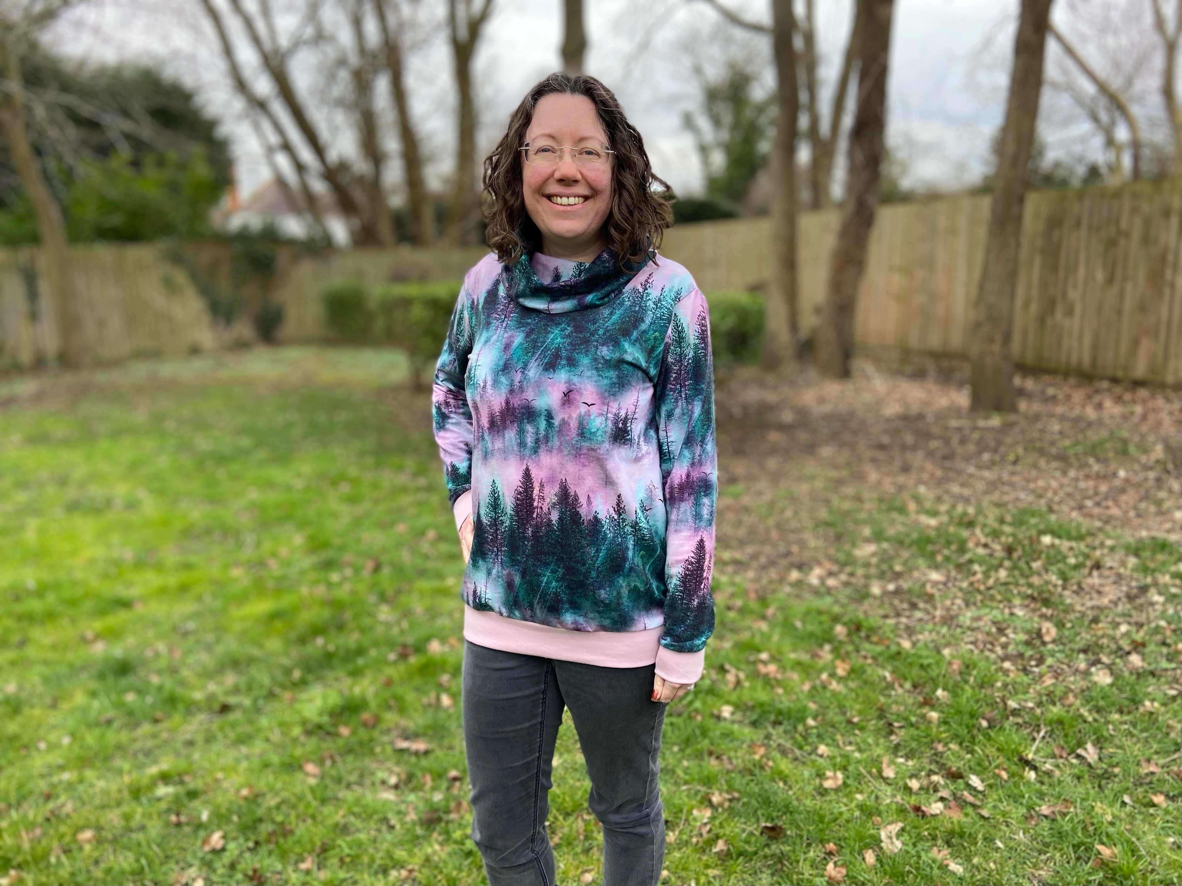 The Hot Mocha Sweatshirt is the perfect cool weather addition to your sewing collection. Choose between three neckline options: crew (round) neck, cowl neck and hoodie. In addition, there are two pocket options: patch pockets and kanga pouch. Finally, add to that the two length options and you have a huge number of combinations! It has a relaxed, cosy fit perfect for layering.