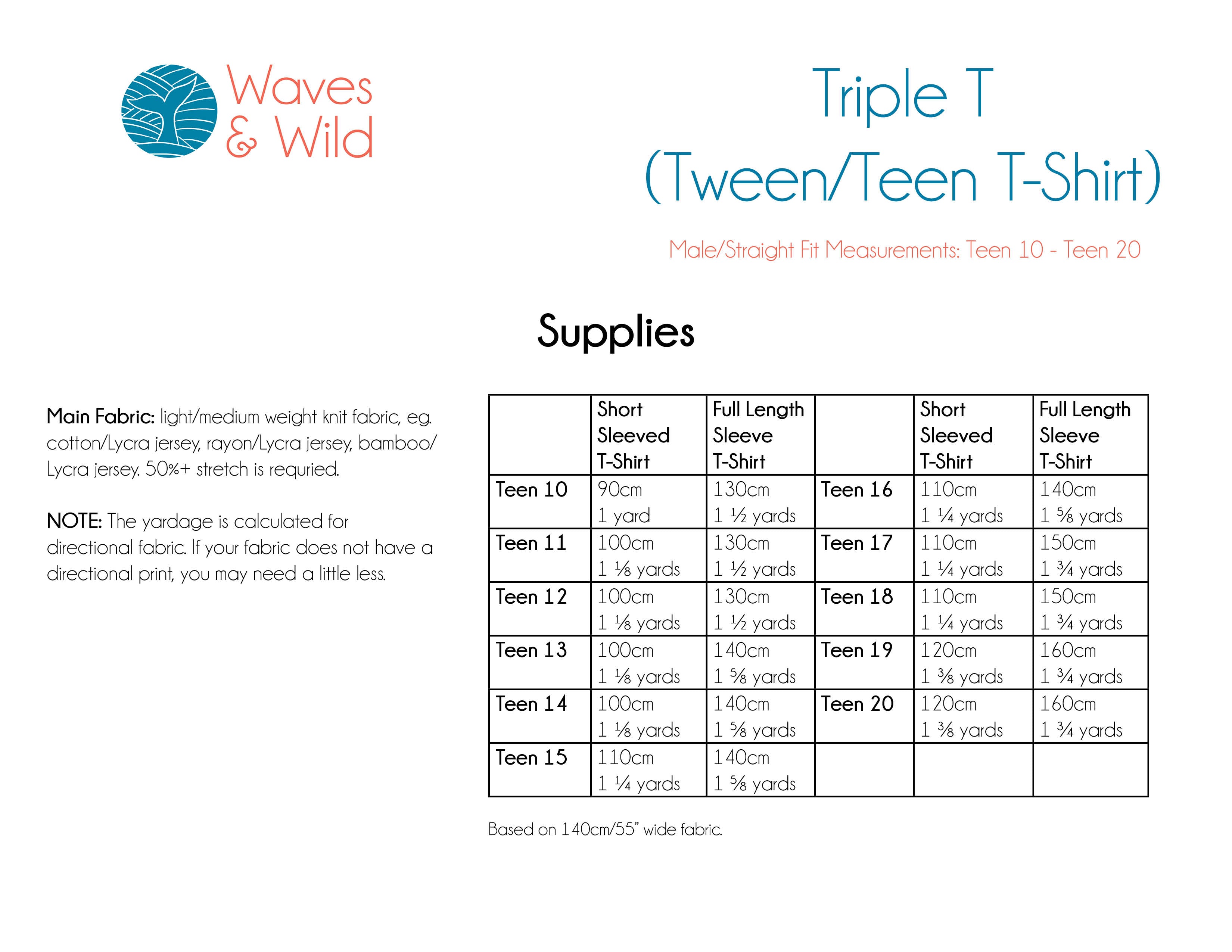 Waves & Wild Triple T - Male/Straight Fit T-Shirt - PDF sewing pattern
