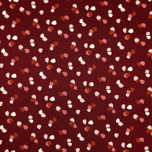 Printed Polyester Peachskin Fabric - Berry/Gold Leaves