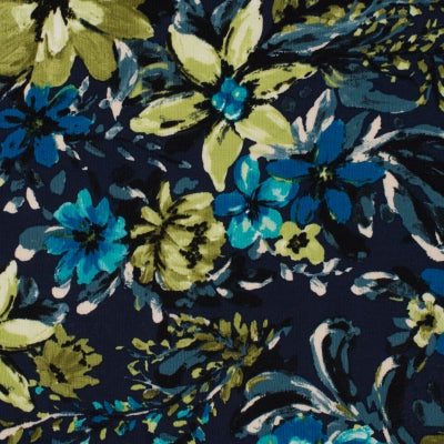 We love the painted style floral illustrations of this print, and the way the navy background makes the greens and blues really pop!