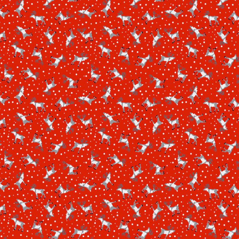 Lewis & Irene x ARNE & CARLOS 'Norwegian Christmas' - Reindeer Red - 100% Cotton Fabric