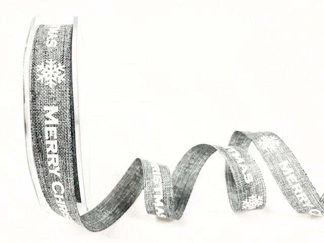 15mm Faux Linen Grey Merry Christmas Ribbon