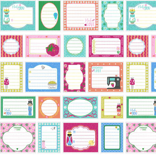 Celebrate your love of sewing with this passionate print from Blank Quilting. Bursting with beautiful bright colours, these labels are a great way to personalise your creations, and have space for your own personalised message. Great for everything from quilts to clothing and accessories!