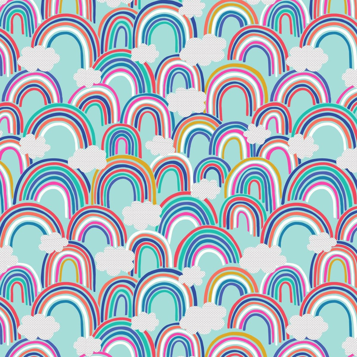 Lewis & Irene Over the Rainbow - All Over Rainbows Light Turquoise - 100% Cotton Fabric