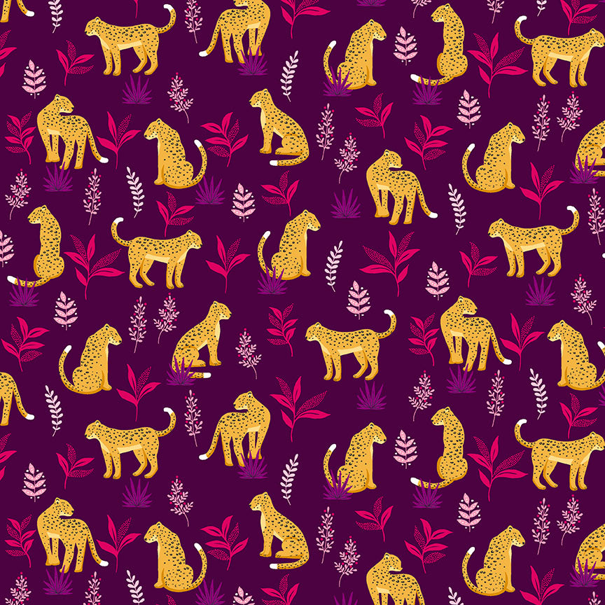 Makower Jewel Tones - Cheeky Leopard Aubergine - 100% Cotton Fabric