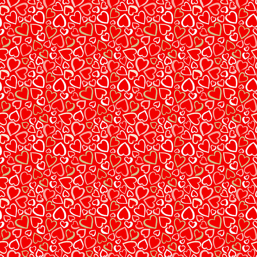 Makower Pamper - Hearts Red (metallic) - 100% Cotton Fabric