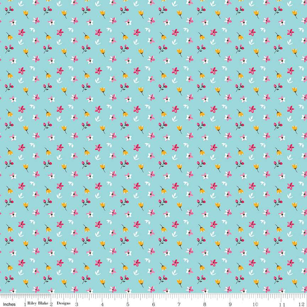 Riley Blake Fleur - Petite Flowers Aqua - 100% Cotton Fabric