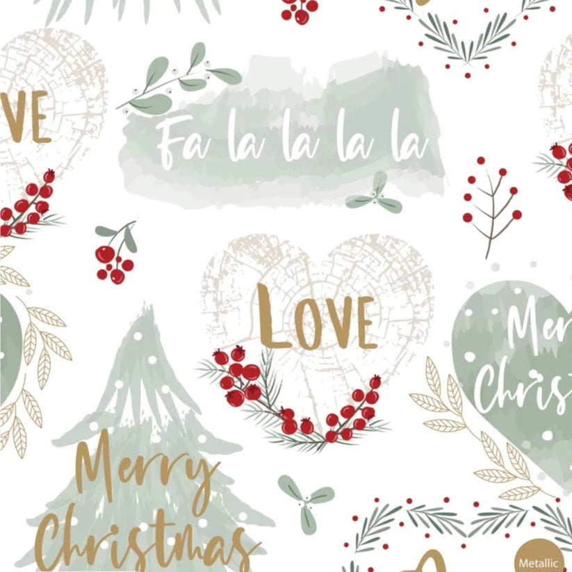 Take a walk into the winter woodland with this serene seasonal collection designed by Victoria Louise Design for Craft Cotton Co. Full of wintry scenes, this collection is finished in soft muted shades of mint, white and metallic gold elements for that extra festive touch. Add some sentiment to your project with this beautiful script print, featuring festive phrases in glittering gold set on Christmas foliage.- Brand: The Craft Cotton Co.