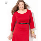 Women's & plus size dress in 3 lengths & sleeve variations. Individual patterns included for slim, average & curvy fit and cup sizes B, C, D for women & C, D, DD for plus. Amazing Fit Collection by Simplicity.