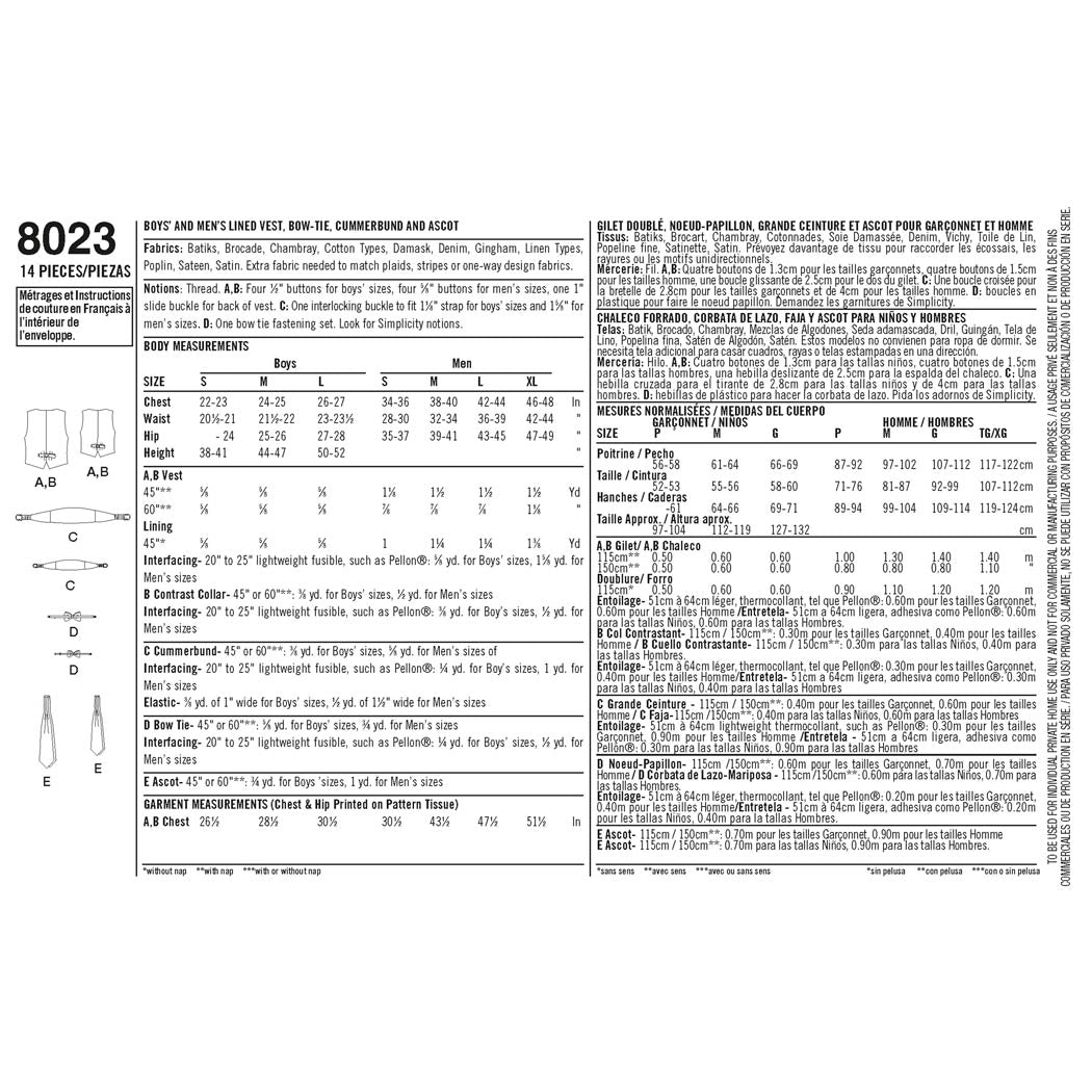 Simplicity Sewing Pattern 8023 - Boys' and Men's Vest, Bow-tie, Cummerbund and Ascot