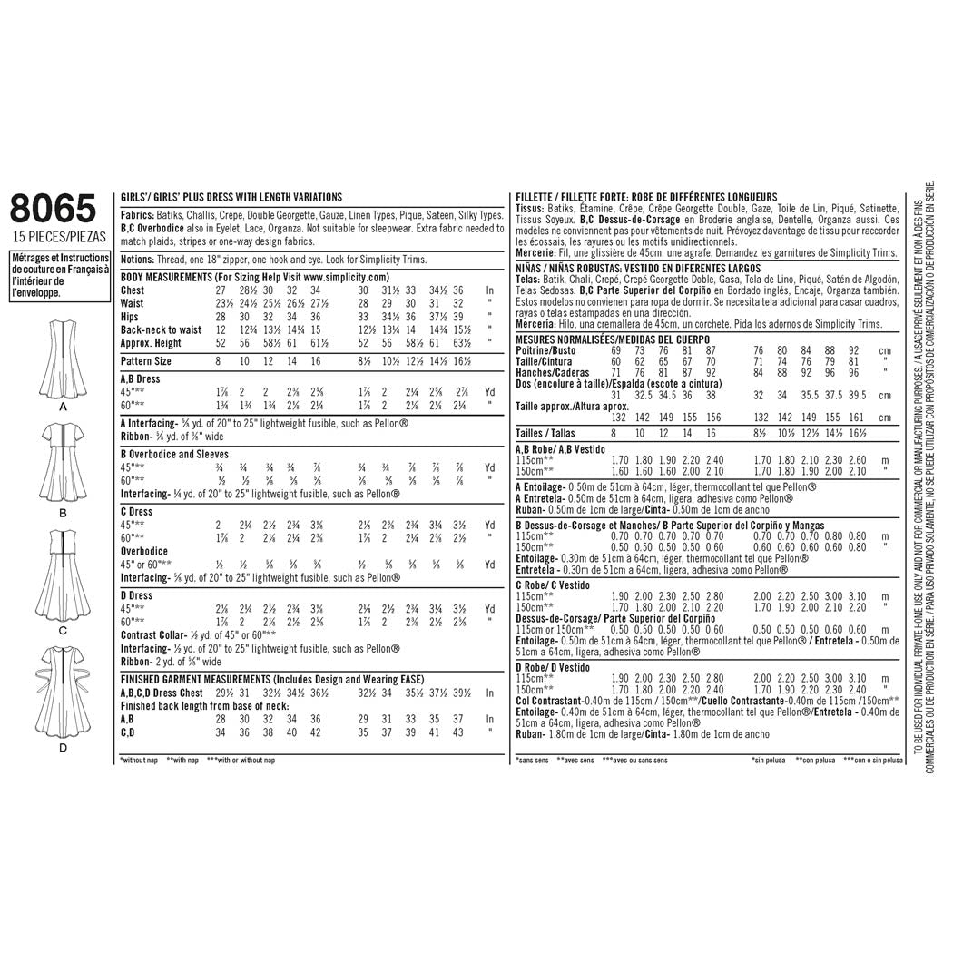 Simplicity Sewing Pattern 8065 - Girls' and Girls' Plus Dress or Popover Dress