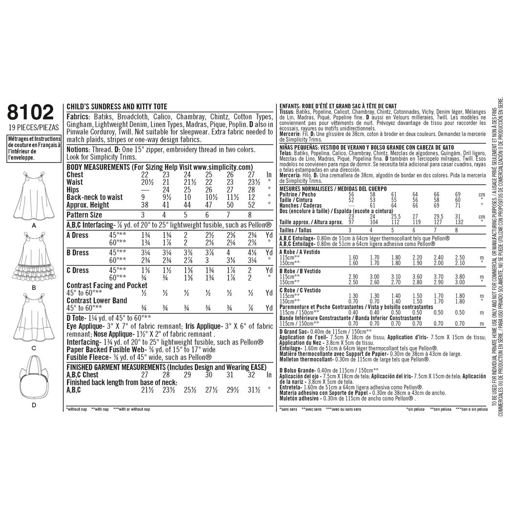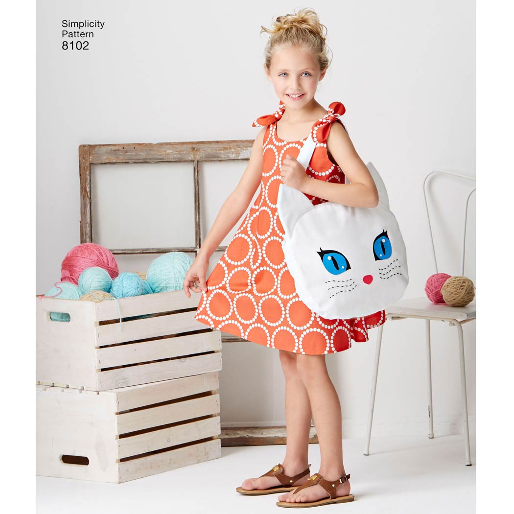 Simplicity Sewing Pattern 8102 - Child's Easy-to-Sew Sundress and Kitty Tote
