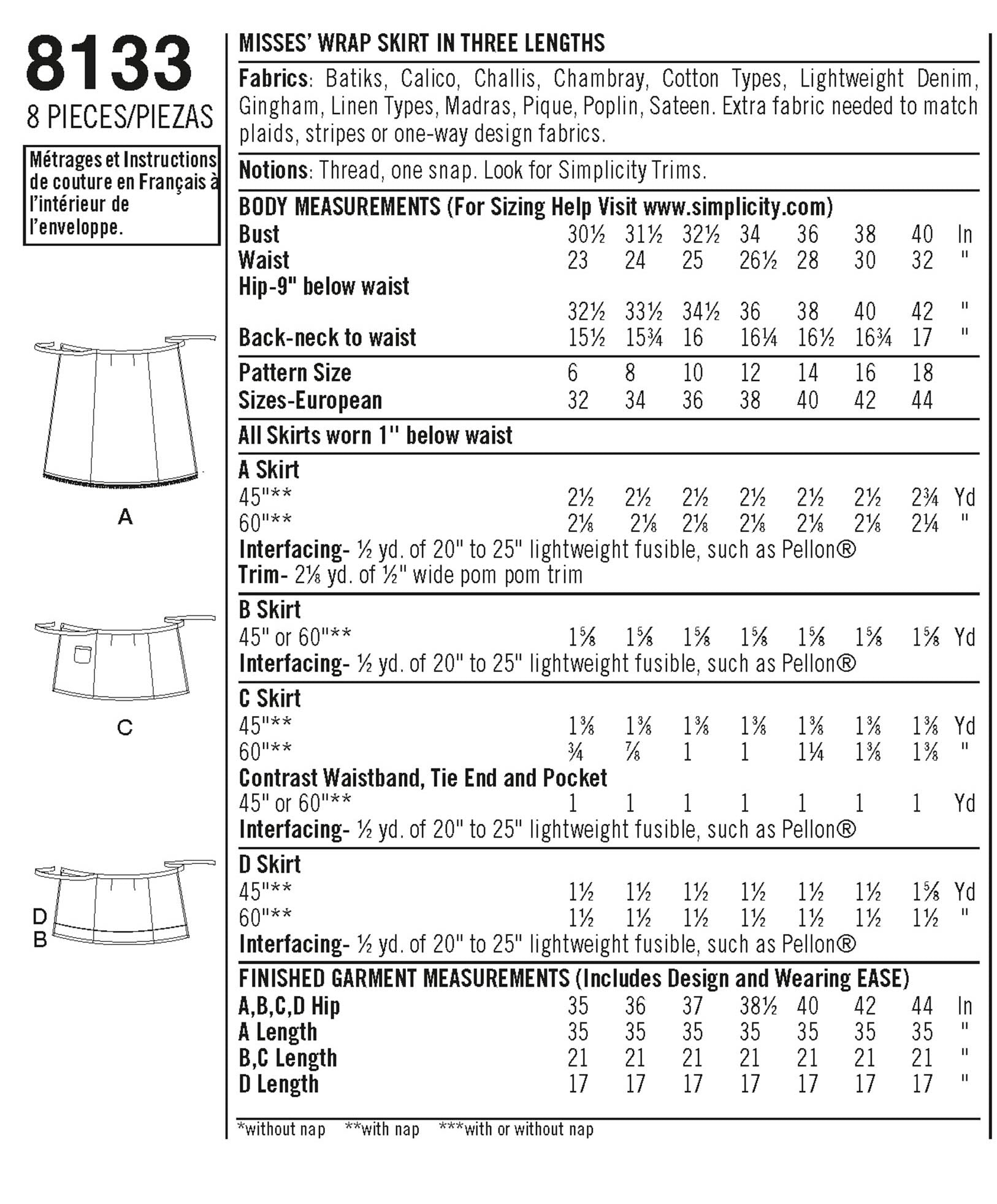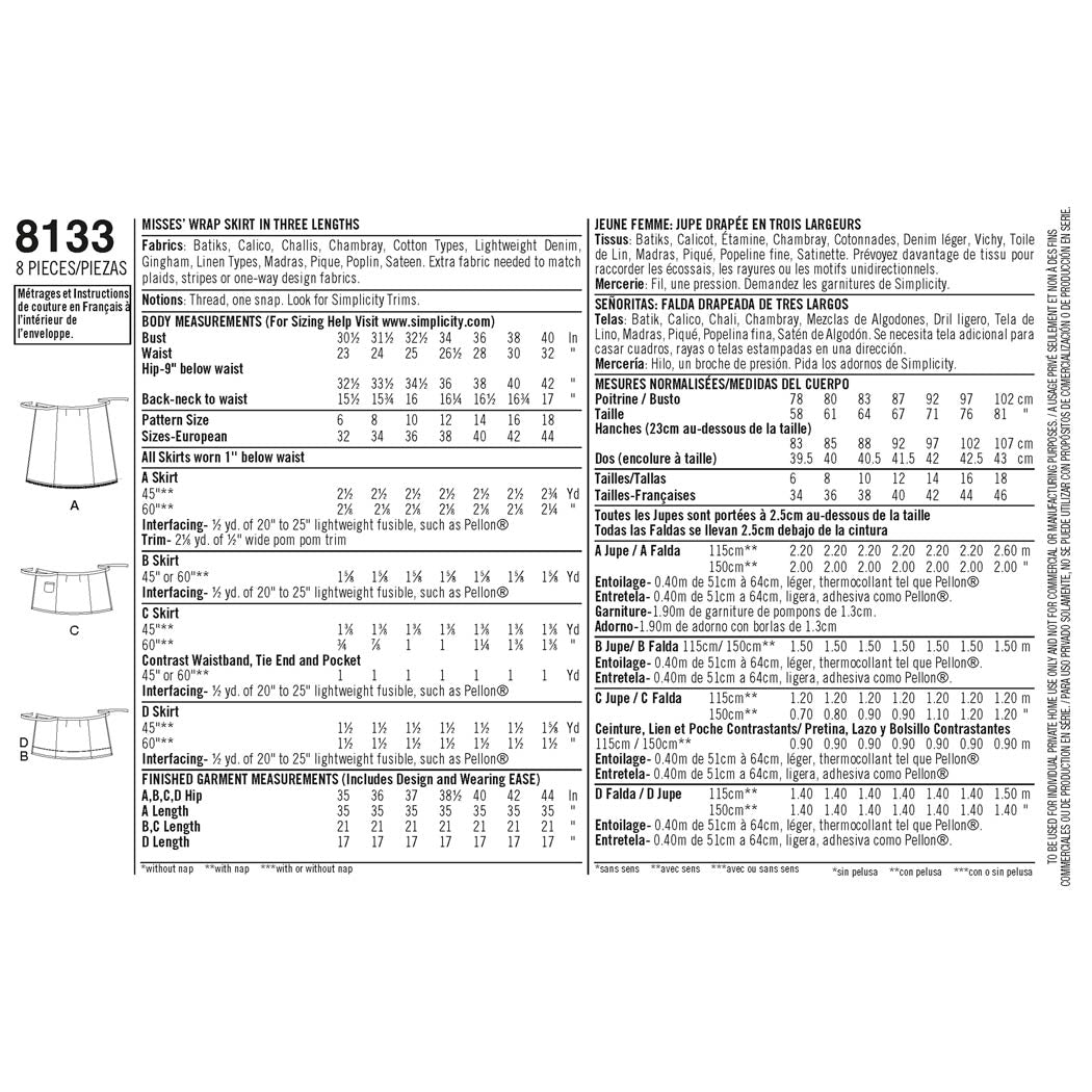Simplicity Sewing Pattern 8133 - Women's Learn to Sew Wrap Skirts