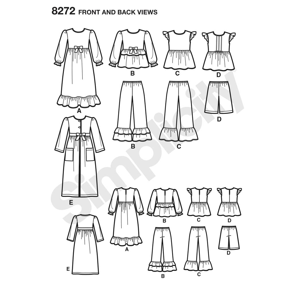Simplicity Sewing Pattern 8272 - Child's and Girl's Sleepwear and Robe